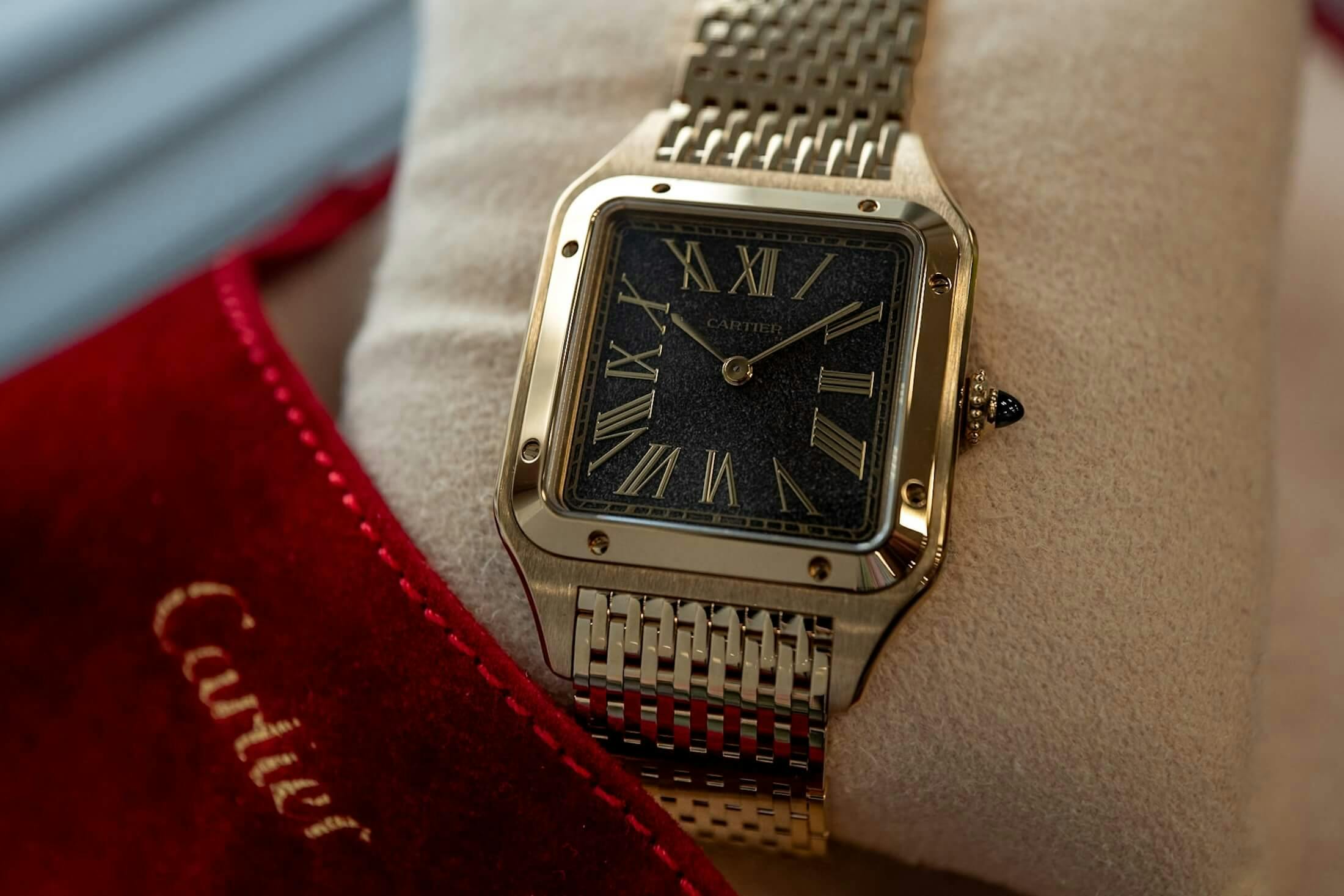Introducing カルティエ サントス デュモンにゴールドブレスレットとオブシディアン文字盤が登場