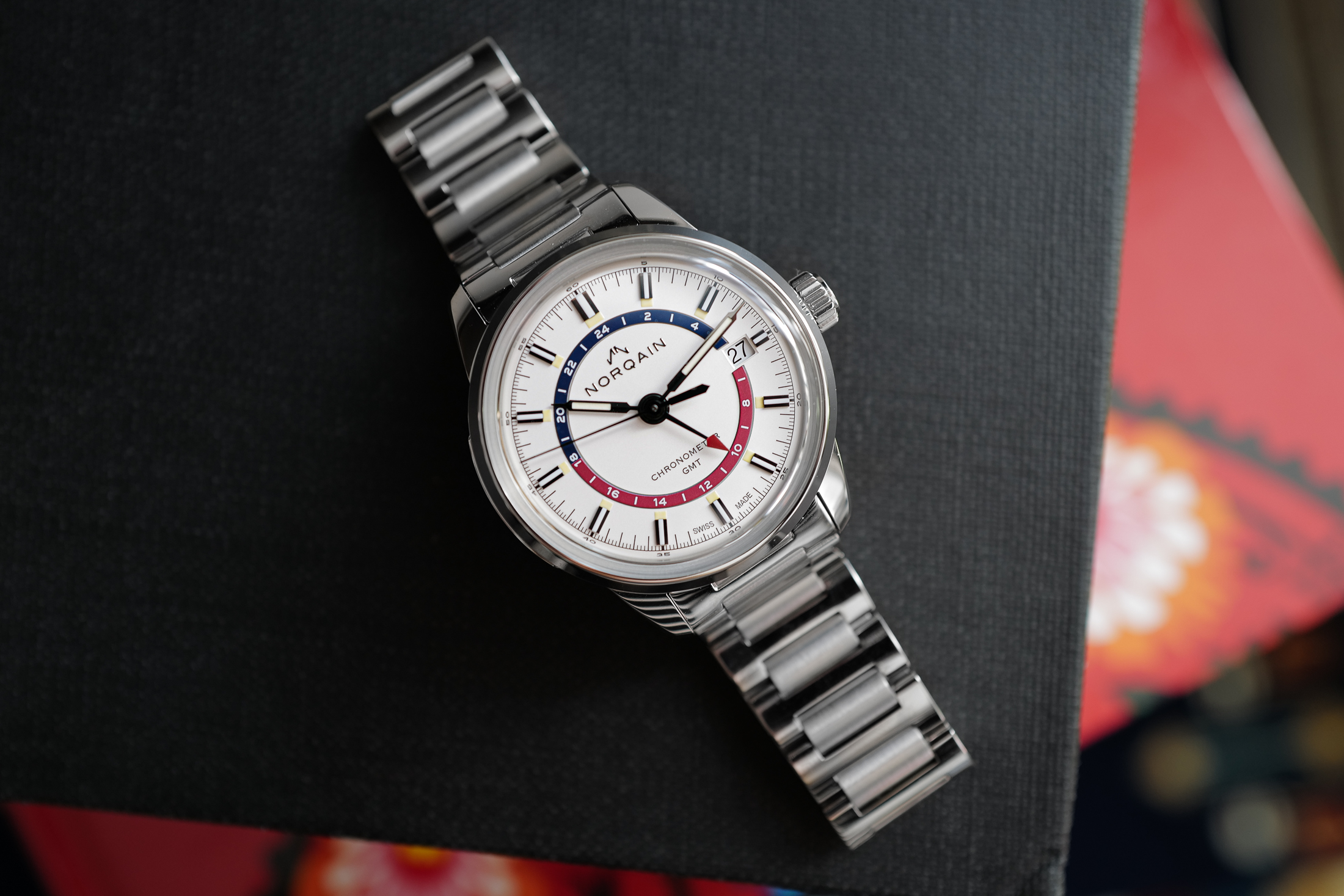 時計は楽しいはずのものであり、ノルケインはその点を十分に満たしている。ノルケインは、GMTのデザインに、大胆な色と印象的な文字盤を加えた。その結果、真のGMTウォッチを求める人たちに、素晴らしい選択肢を提供することとなった