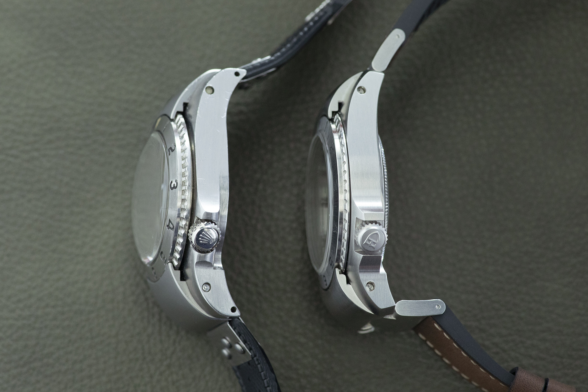 1960年代のプロトタイプ(左)と2019年のバーゼルワールドで発売されたチューダー P01(右)。