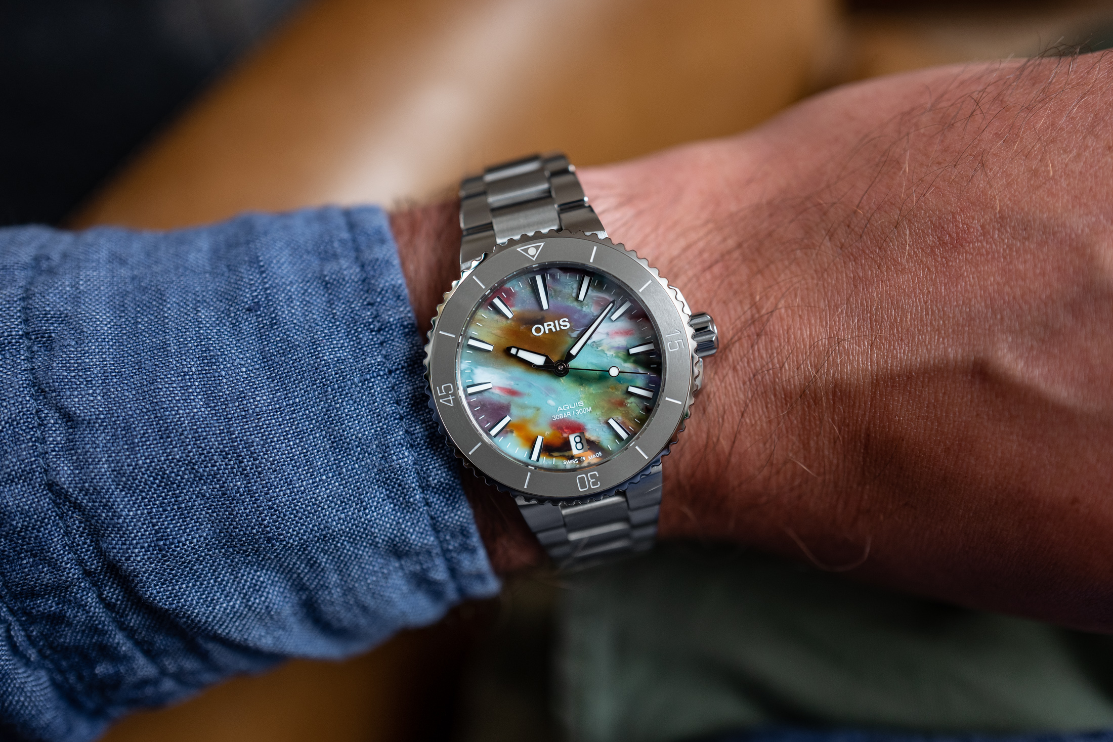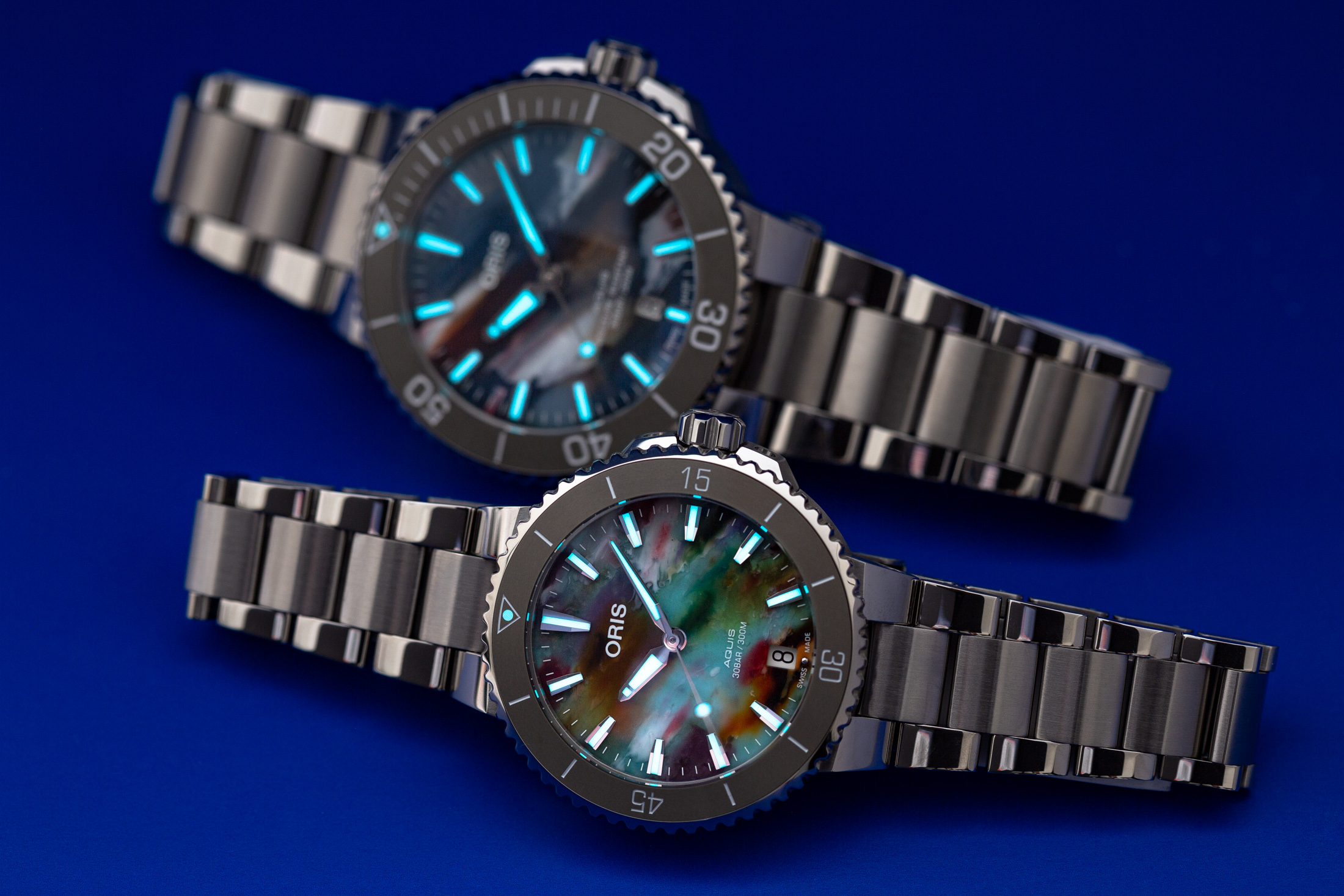 オリスは最近、気候中立認定企業となり、2022年に向けてサステナビリティレポートを発表することを約束した。そして、リサイクルされた海洋プラスチックを使用してユニークでカラフルなダイヤルを作ることで、サステナビリティへのコミットメントをさらに強化した2つの新作アクイスを発表した。