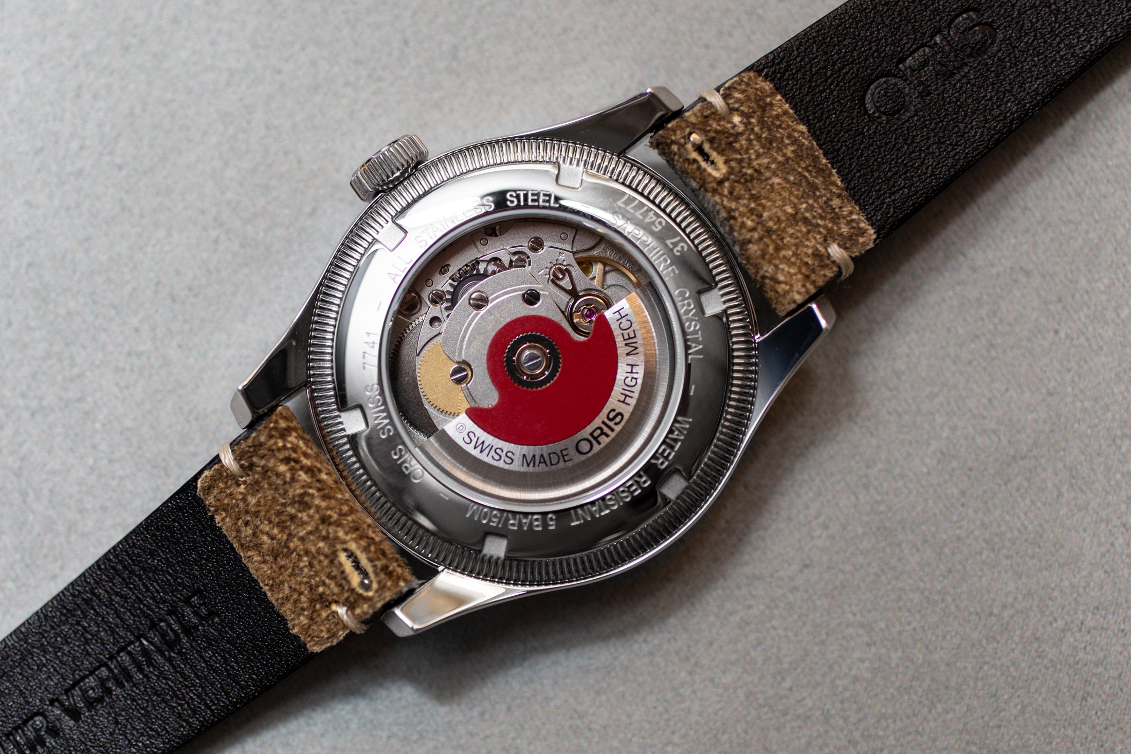 本機は、ステンレススティールのブレスレットとレザーストラップ、2つのバリエーショがある。化学物質を一切使わず、ベジタブルタンニンでなめした鹿革ストラップは環境にやさしい。また、40㎜のSSケースにドーム型のサファイア風防、シースルーバックと若干大型化したリューズが特徴だ。 ムーブメントにはセリタの自動巻きSW200をオリスがカスタマイズしたものを搭載。振動数4Hzでポインターデイト機構を備え、約38時間のパワーリザーブを持つ。