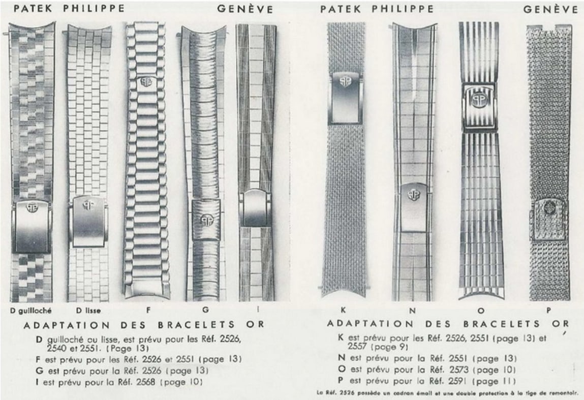 ロブスターブレスレットは、クラスプ(留め金)にPPの頭文字の刻印があり、内側には完全なサインが刻印される。下の画像のピンクゴールドのブレスレットのように、ゲイ・フレアー社の刻印が入っているものも存在する。ここでは、その価値に明確なヒエラルキーはなく、多くのRef.2526のオーナーはこれらのブレスの違いを気にしていないが、これらのブレスは時計に特別な力を与え、紛れもなく興味深いものとなっている。