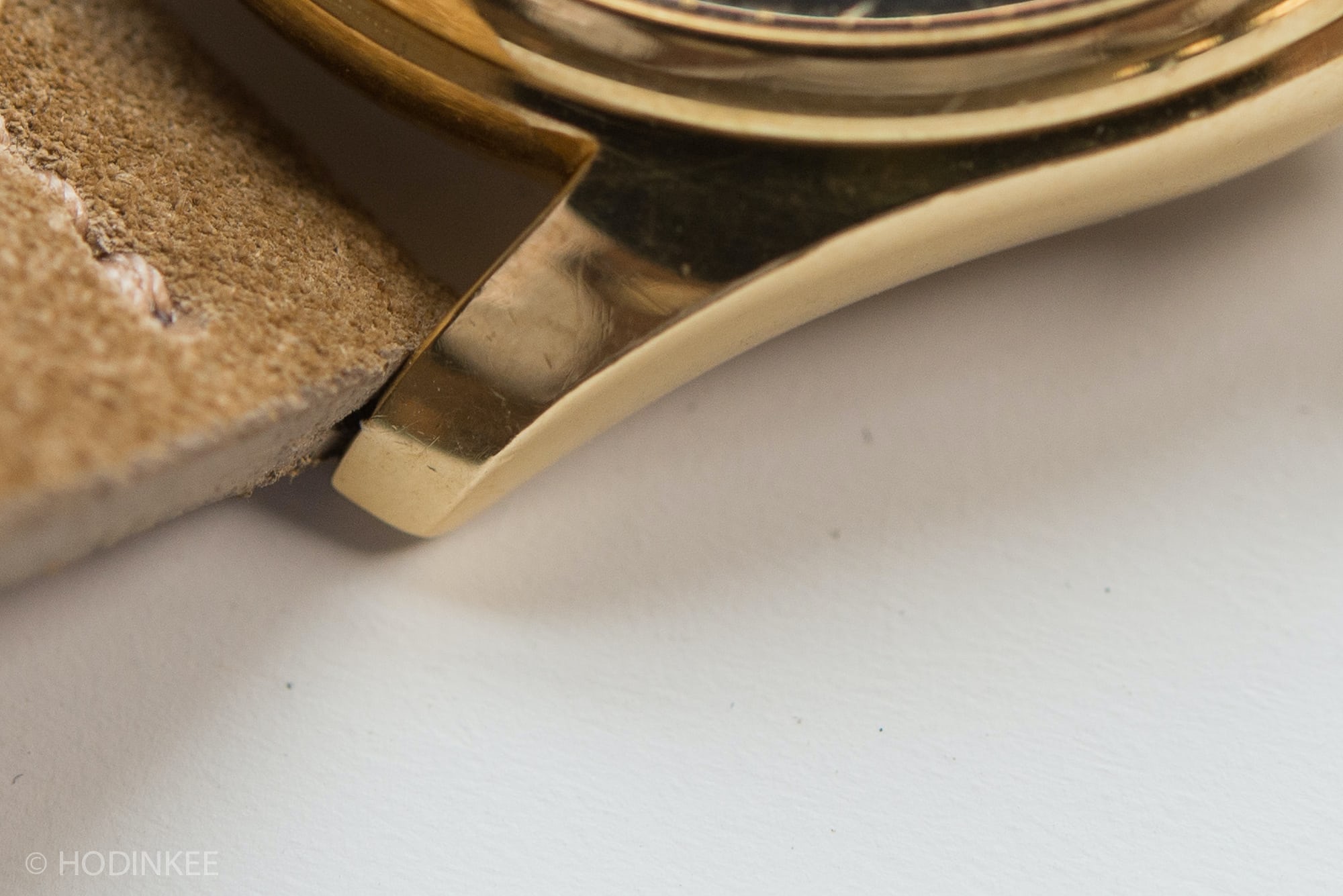 おっと、刻印についてもう少し補足しておこう。全てのRef.2526には6時位置のラグの間とラグの裏に刻印がある。ケースがどれだけ研磨されているかを判断するために、必ずこのマークを確認することだ。