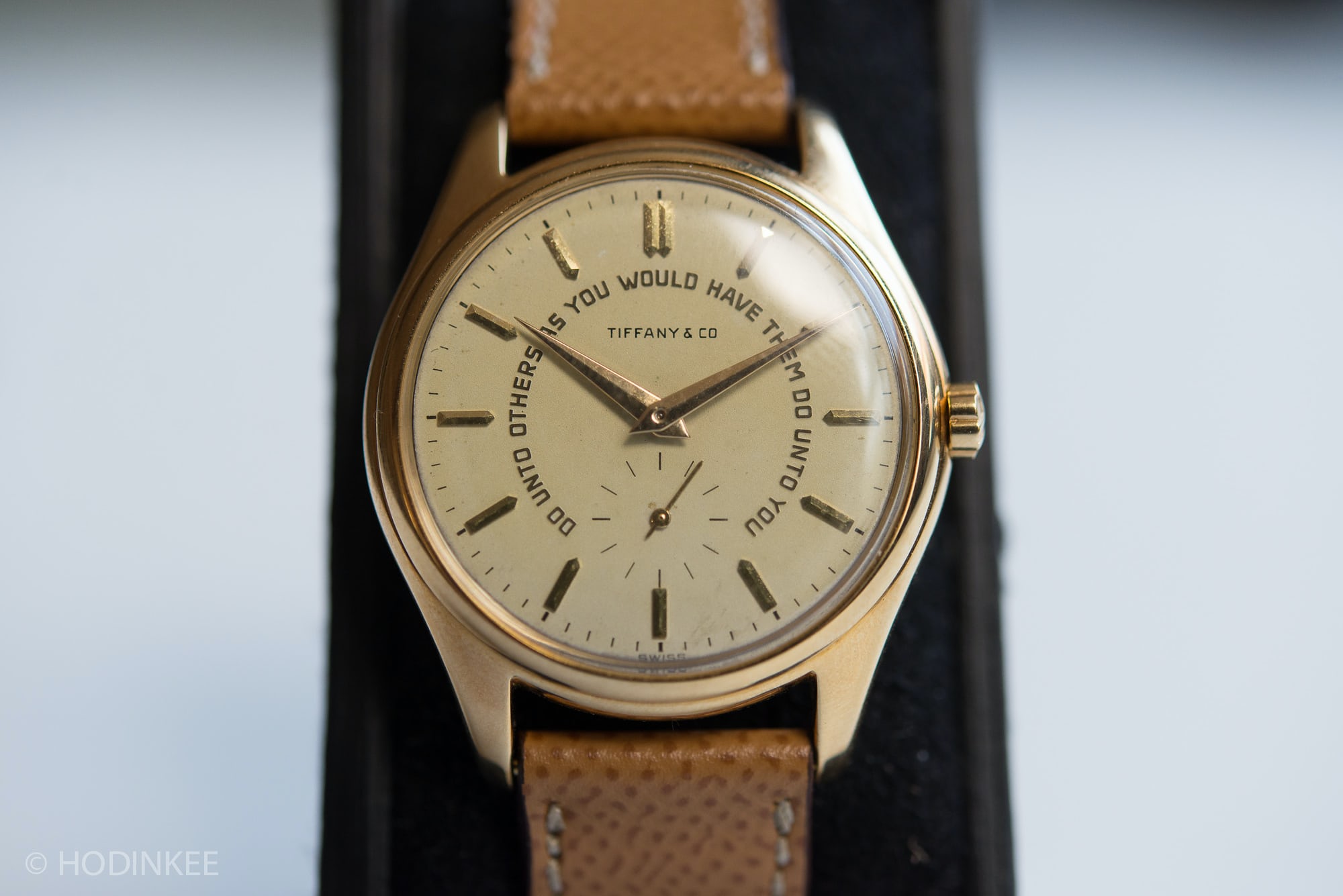 他にも金属製ダイヤルにはティファニーネームが入る上の(さらに上の)写真のように“Do Unto Others As You Would Have Them Do Unto You(汝が欲するところを人に施せ)”と書かれている。この時計はLBJ(リンドン・B・ジョンソン)が米国大統領になる前に注文したもので、彼はニューヨークのティファニーの上顧客だったからだといわれている。これらのダイヤルはパテックによって取り付けられたのではなく、アンリ・スターン時計代理店に時計を卸した後にティファニーによって取り付けられた可能性が高いことに注意すべきであり、パテックは近年、そのような時計のアーカイブを発行していない。さらに、これらの時計の大部分はリダン(ダイヤル補修)されているため、状態がよく適度に経年変化し、記述もオリジナルのダイヤルをもつ個体が見つかることは非常に稀だ。私にとっては、これらは金属製ダイヤルのRef.2526の中で私が最もクールで興味深いと思う個体だ。
