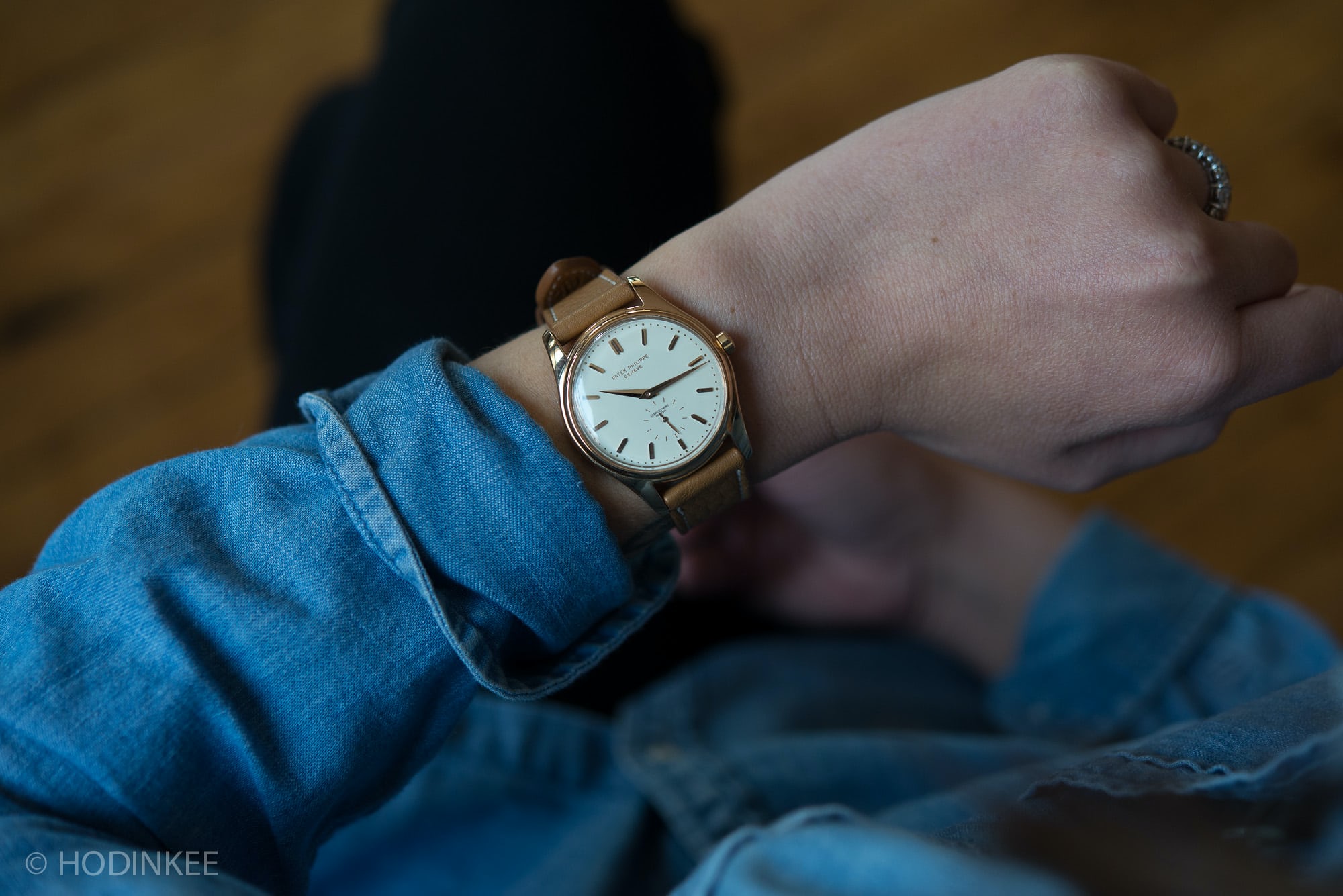 そう、時代を超越したデザインとエンジニアリングに誇りをもっていた時代は、多くの偉大な時計ブランドにとって過去のものになってしまったのかもしれないが、だからといって今もそれが見られないわけではない。これまで述べてきたように、イエローゴールドのRef.2526は、新品のSS製ノーチラスとほぼ同じ価格で手に入れることができるが、どちらがより手仕事感があると感じるだろう? さらに、Ref.2526のケースサイズと形状は完璧で、Ref.570よりも厚く、さらにバランスが取れている感じられ、Ref.2526は男性にも女性にもよく似合う(上の画像でご覧いただけるように - 人生の伴侶とシェアできるというのは良い交渉材料になる)。