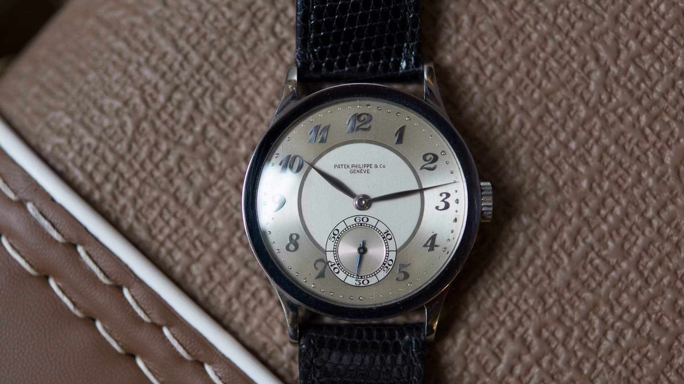 素敵だろう? 薄型のプラチナケースに、ブレゲ数字を配したツートンダイヤル。これぞパテックがつくる最高のタイムオンリーみたいな顔つきだ...まあそう思うのも、ベースになった時計、同じ構成のスティール製Ref.570を見るまではだが。