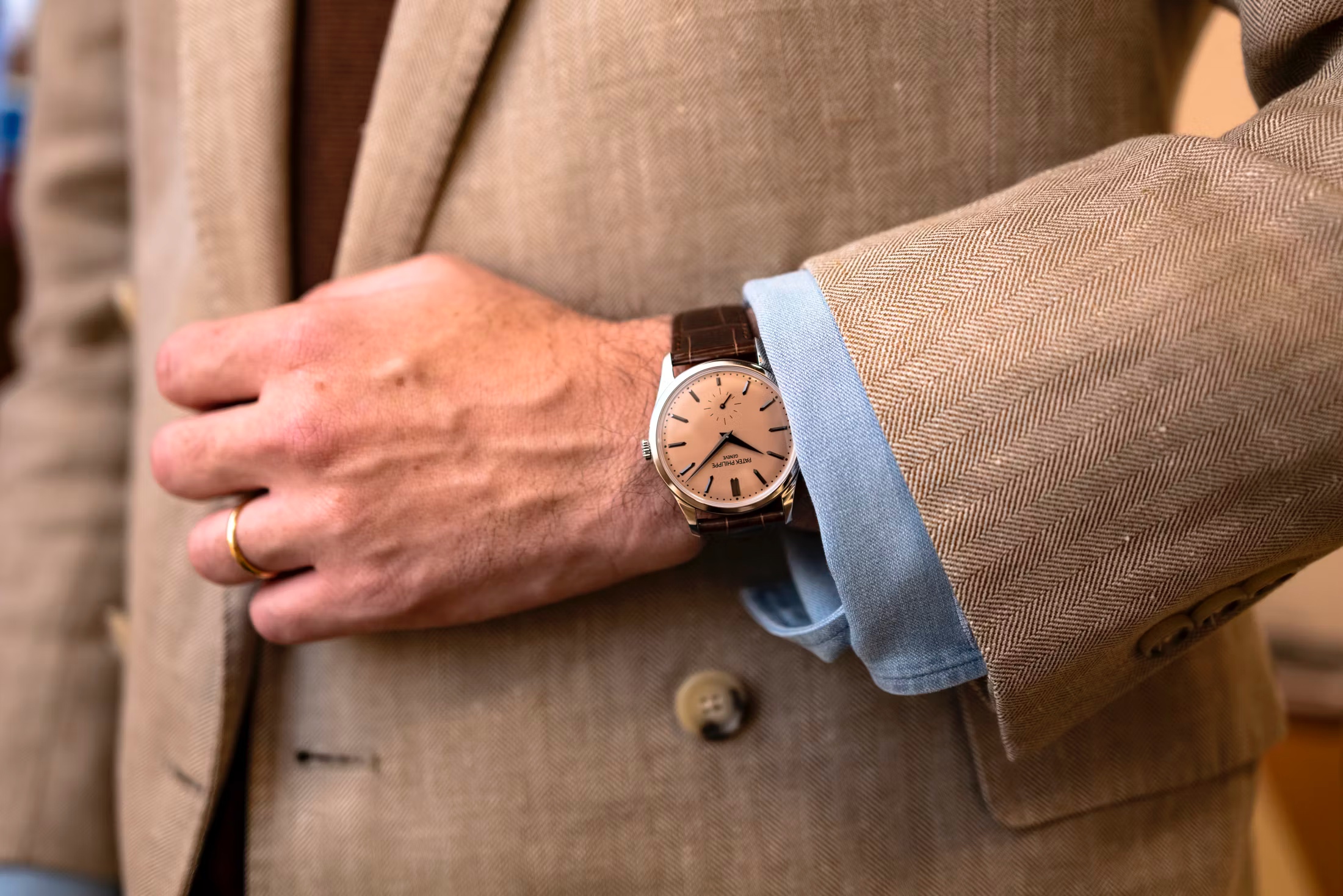 このダイヤルのトーンは驚くほど温かみがあり、どこかカジュアルですらある。そしてこれが私の普段の服装(昨日もそうだった)と驚くほどよく合う。だからこそ、この時計は私のなかで“素晴らしい”から“ここ17年間で最高”にまで昇格した。技術的に優れているだけでなく、美しさの面でも完璧だ。ここ最近のパテックに欠けていたのは、まさにこの美しさだと思う。そう、君のことだ、5822P。