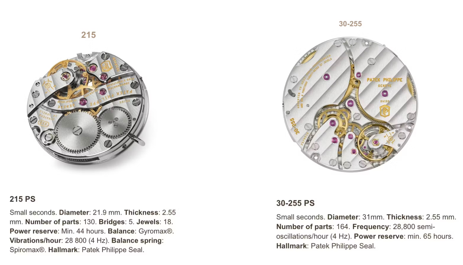 Cal.215のスペックは直径22mm、厚さ2.5mm、部品点数130個、18石、2万8800振動/時、パワーリザーブ約44時間。このムーブメントは5196の全バリエーションに採用されていたし、すでに5196はカタログ落ちしている。でも信じられるか? パテックは今でも、このキャリバーを4モデルで使い続けている。しかもその搭載モデルの最大ケースサイズは31mm×34mm。つまりパテック自身、Cal.215は小型ケースでこそ生きると、きちんと分かっていたというわけだ。
