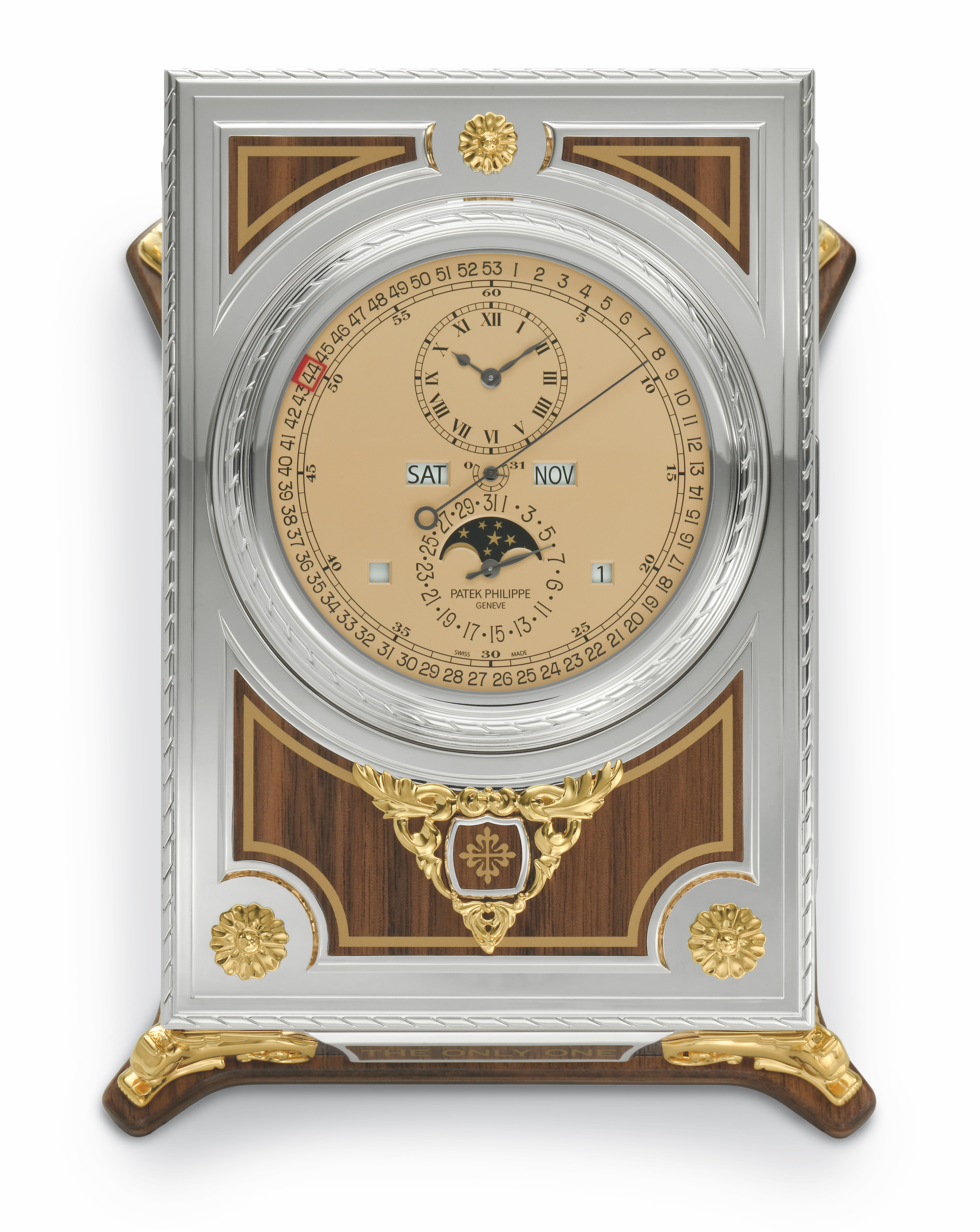パテック フィリップの「コンプリケーテッド・デスククロック」は、今年のオンリーウォッチのトップロットになることは間違いないだろう(この記事が掲載された時点ではオークションは進行中だった)。2019年のオンリーウォッチでは、ステンレススティール製のグランドマスター・チャイムが3100万スイスフラン(当時約33億8000万円)で落札され、世界で最も高価な時計となったことで注目された流れが続いている。