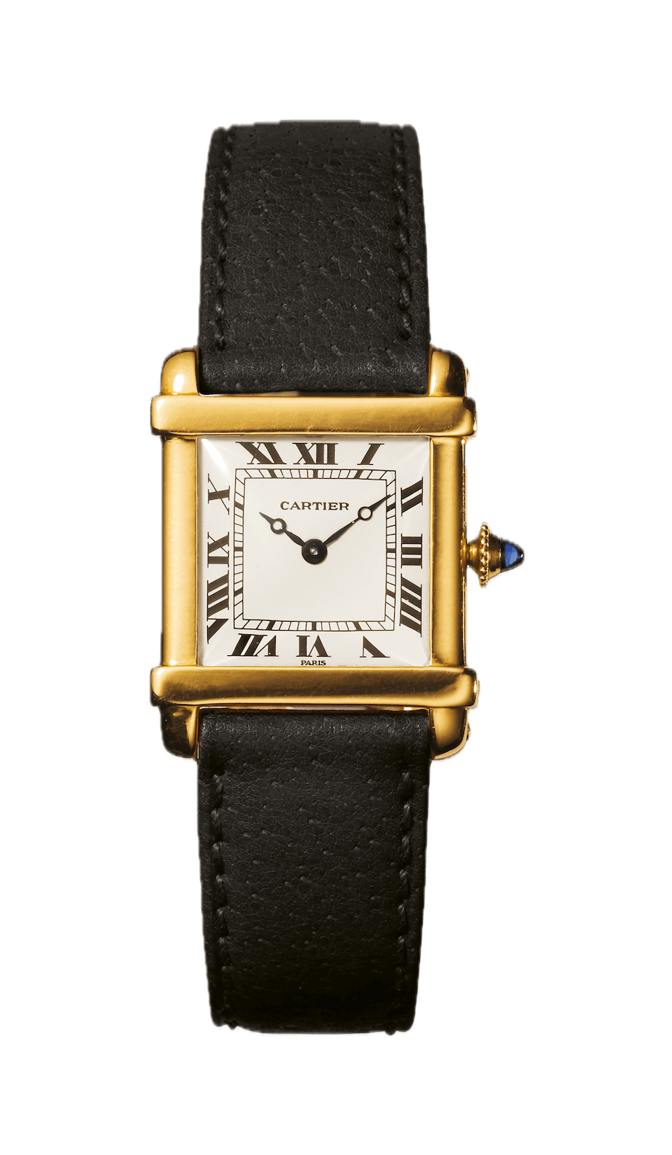 最初のタンクは1919年に登場し、戦車の直線的なフォルムをケースとストラップに反映させた。意外性がありメッセージ性も伴ったデザインは上流階級や将校たちに愛されたとされ、時代を象徴するスタイルとして定着。ブランカード(仏語で担架の意)と呼ばれる縦枠を強調した直線のケースが、そのままブレスレットへと続く独創的なデザインが、この時計を他にはない特別な存在にした。