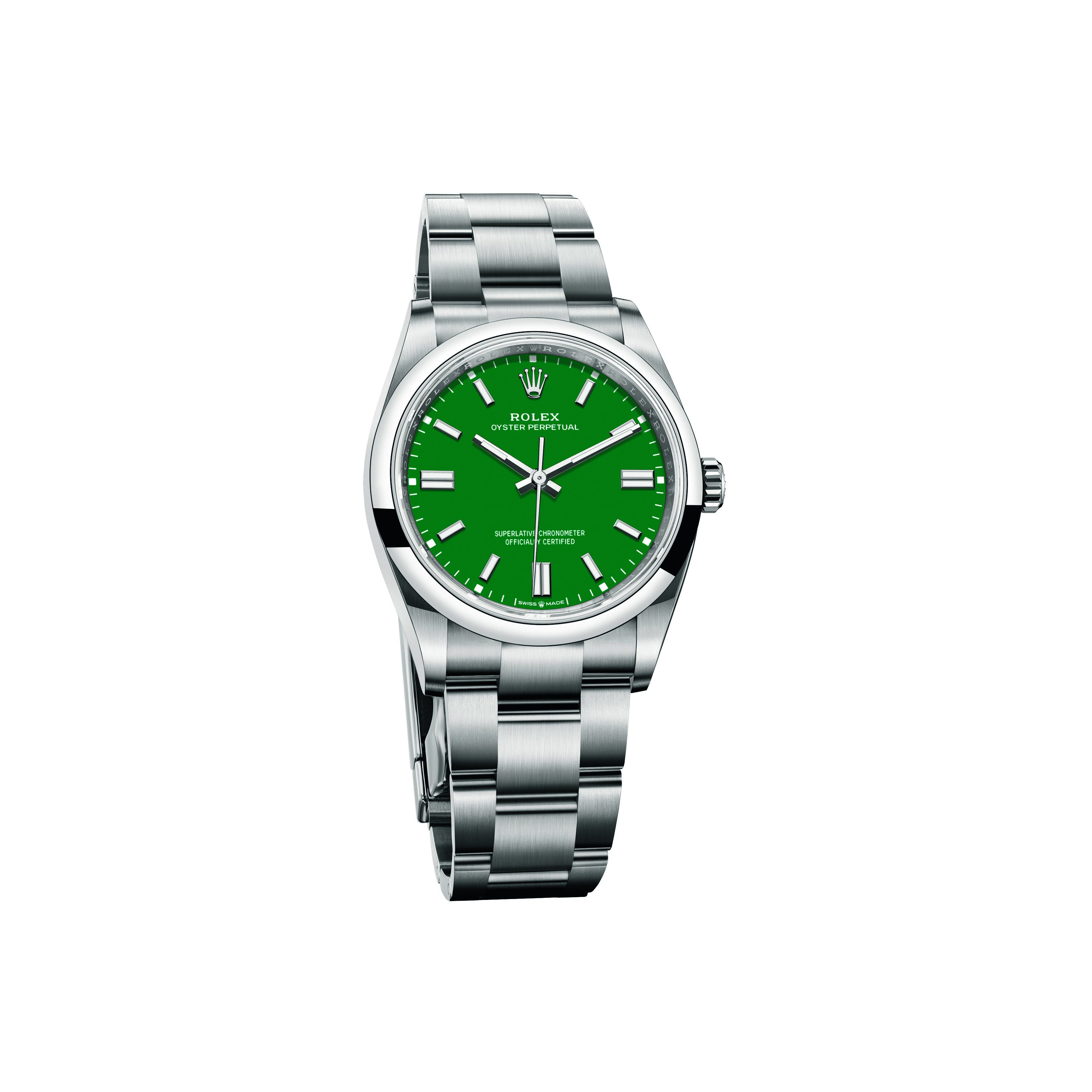 どれも素敵なカラーだ。明るくて楽しく、ミディアムサイズで、手首が小さめの方にもぴったりのサイズ感。36mmのオイスター パーペチュアルは、個人的にお気に入りのモデルなのだ。今回、39mmモデルに代わる41mmモデルが登場したことで、オイスター パーペチュアル 36は、40mm以下のサイズを好む人のためのモデルとして、より大きな役割を果たすことになった。多くの人が着けやすく、気軽に使える最も控えめなロレックスの1つと言えるかもしれない(しかし、これらの新しいダイヤルカラーは、そうはいかないかもしれないが)。