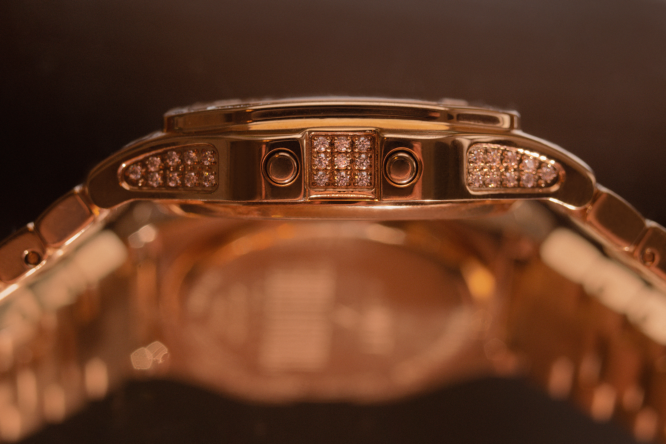 その重厚感とともに、手首につけるとより繊細な印象になる(もちろん、本当の意味で繊細というわけではなく、クリスタルの時計が持つべき繊細さだ)。ローズゴールドの色合いは私の肌の色によく馴染み、クリスタルとの表示はそのままでいい感じがする。