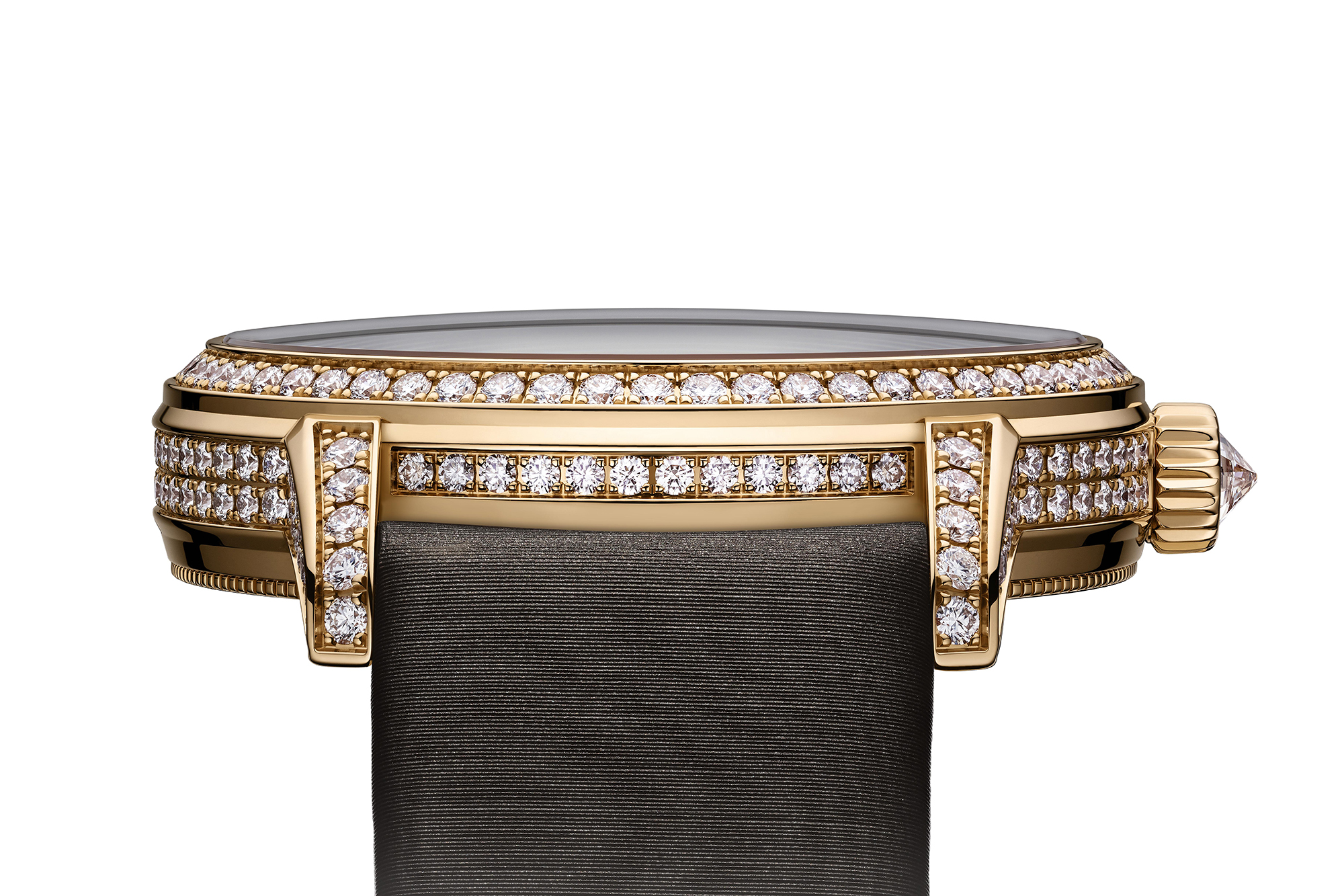 ケース素材:18Kローズゴールドもしくはホワイトゴールド、ダイヤモンド付き