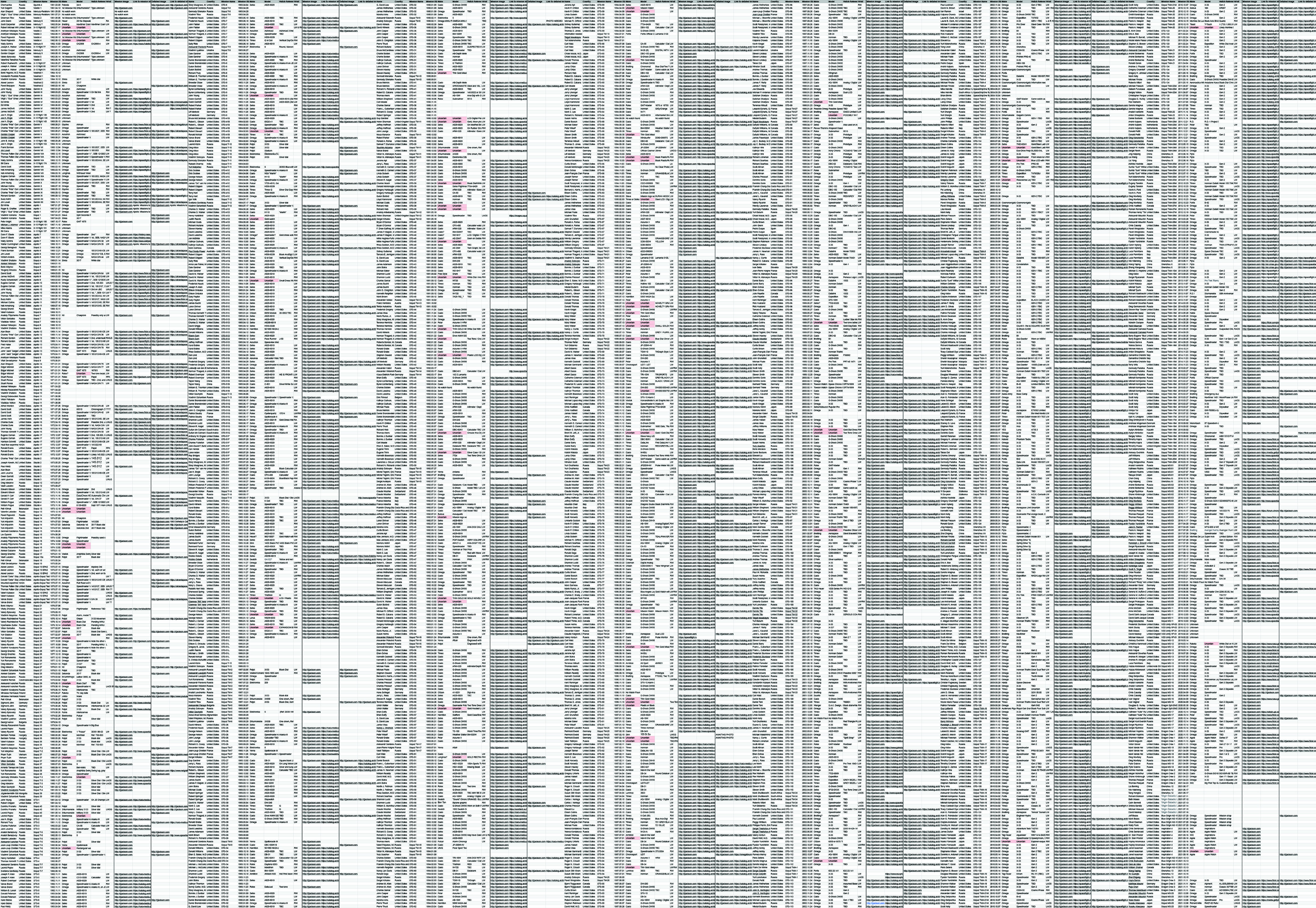 それはすごいですね。そのようなリストは時計コミュニティ以外の人にも役立ちますよ。つまり、あなたは宇宙に行ったすべての飛行士と、それぞれが参加したミッションが網羅されたリストをお持ちなのですね。使用された時計はどうやって推測するのですか?