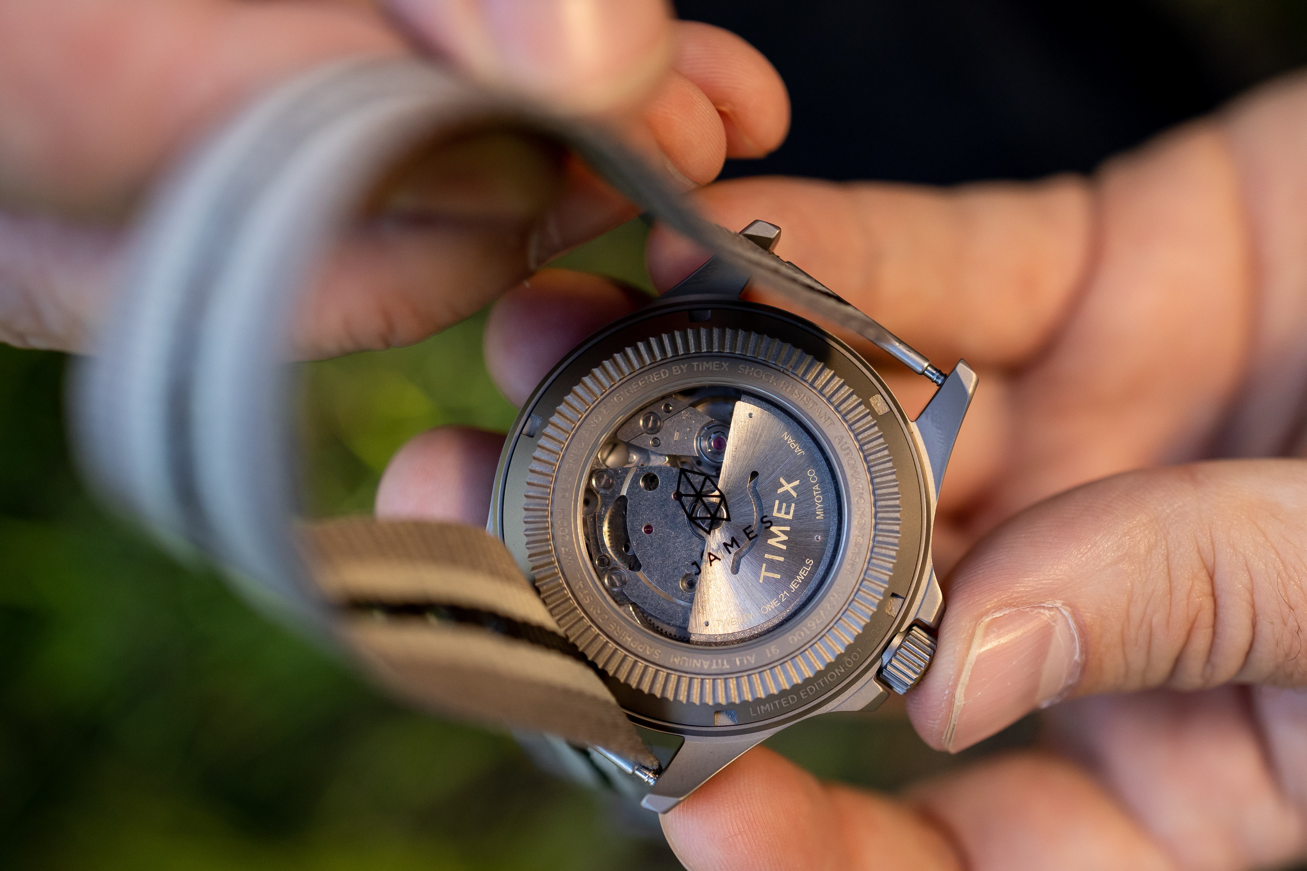 チタン製の機械式時計としては、かなりお買い得だと思う。タイメックスで最もポピュラーな機械式モデルのマーリンは249ドル(約2万7400円)で販売されているが、100ドルのプレミアムで、チタンケースの世界に入ることができる。おまけにサファイアクリスタル風防だ。また、限定コラボウォッチを持つことのアドバンテージもある。もちろん、あなたがそのようなことを信じているのであれば、だが(多くの消費者はそう思っている)。