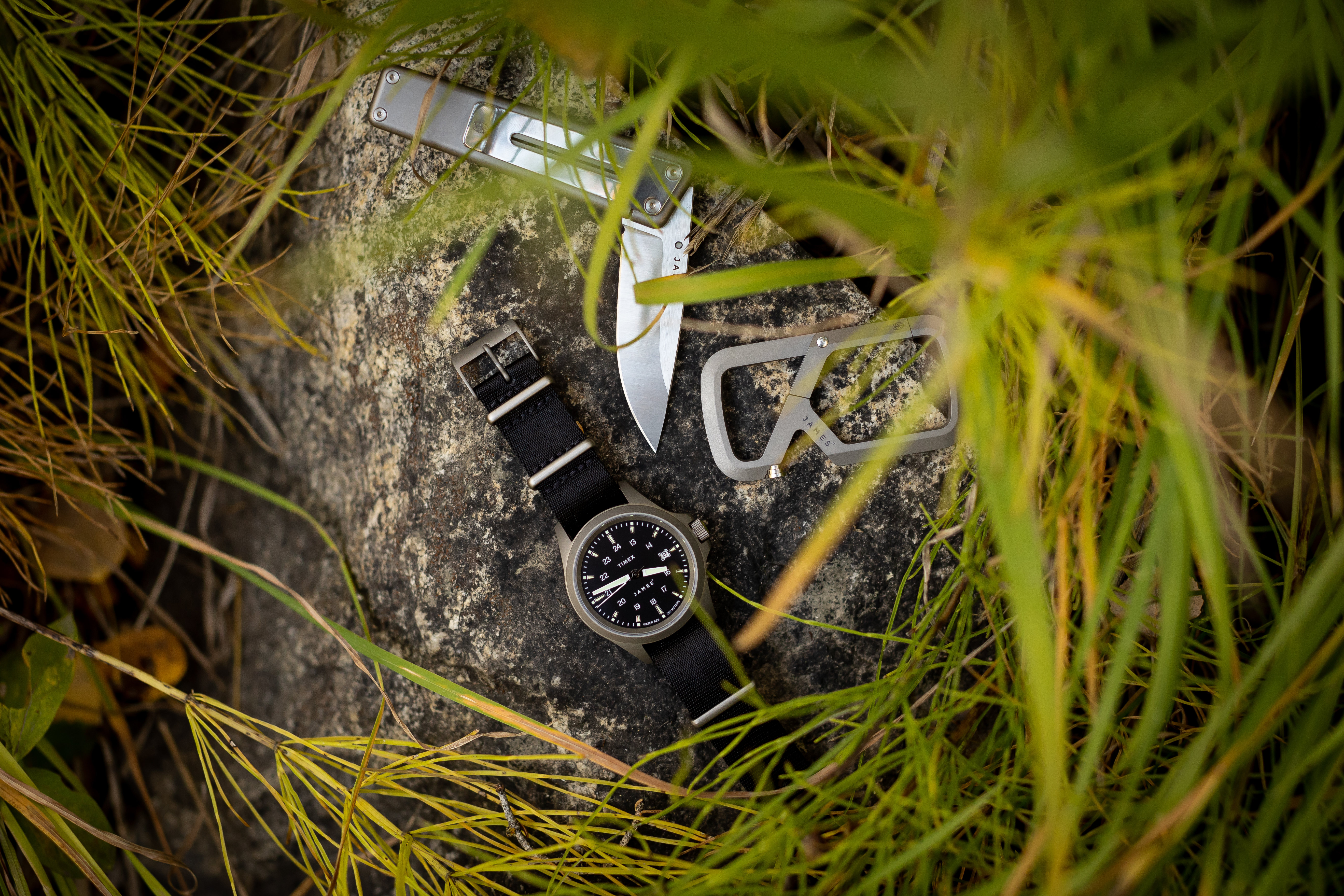 EDCコミュニティでは高級時計の世界のようにラグジュアリーが称賛されることはない。ベンチメイドやカーショウ、ウォックスの懐中電灯がツートンカラーのエクスプローラーに合うとは限らないのだ。シンプルさと便利さ、そして贅沢でないことが称賛される。タイメックスはその枠組みの中で完璧にフィットする。技術的に優れているだけでなく(ミヨタ製のムーブメントはEDC愛好家が好むタイプだ)、親しみやすく気取ったところがない。森の中では、あなたがつけているのが最新の独立系ブランドの時計であろうが入手困難なロレックスだろうが、誰も気にしないのだ。
