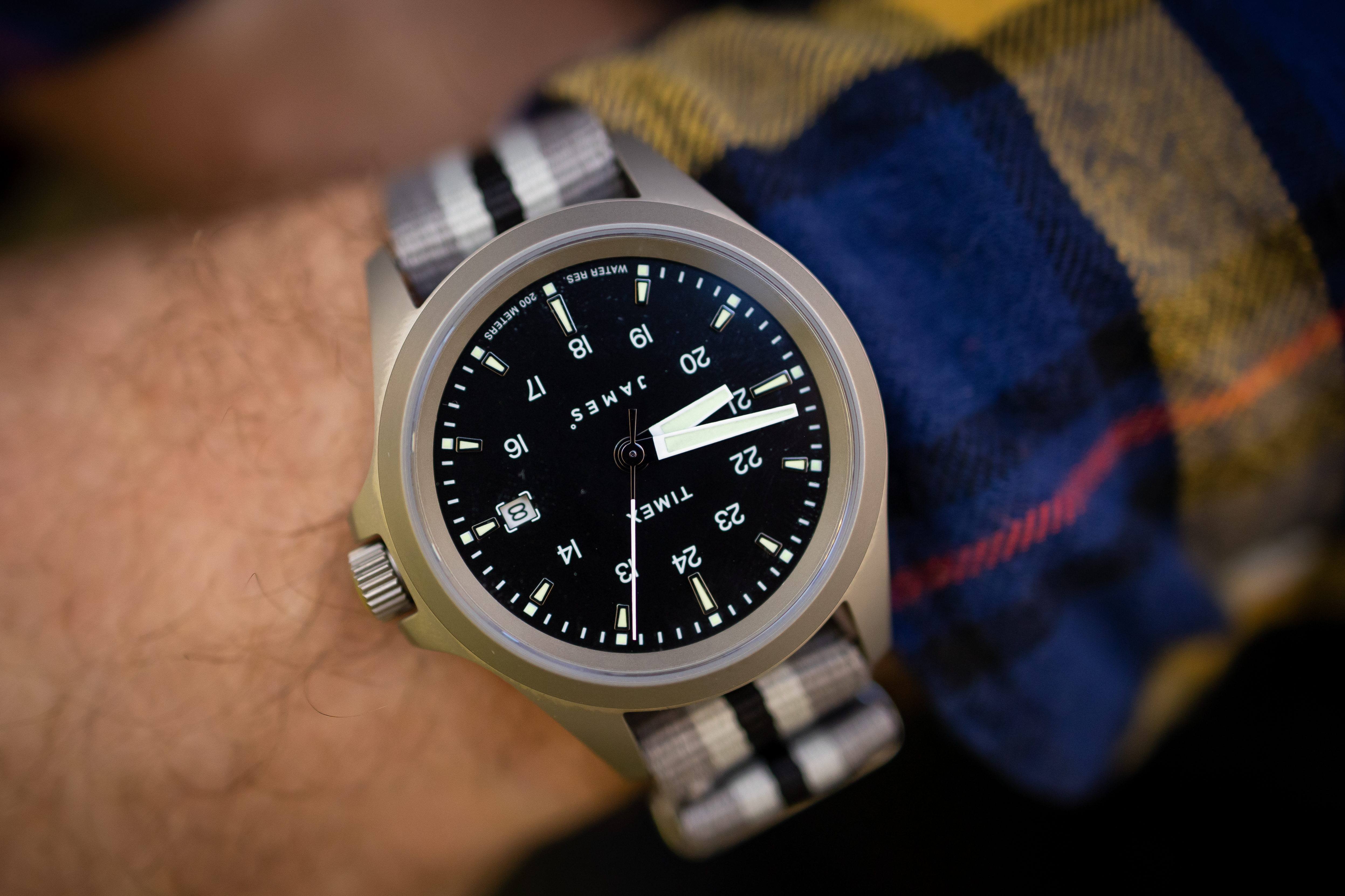 ジェームズブランドのタイメックスの購入者は、歴史的なつながりや時計の希少性、ブランドのレガシーにはあまり関心がない。彼らが求めているのは現場で自信を持って身につけられる時計であり、ナイフや懐中電灯などのほかの道具と同じように扱うことができる時計なのだ。