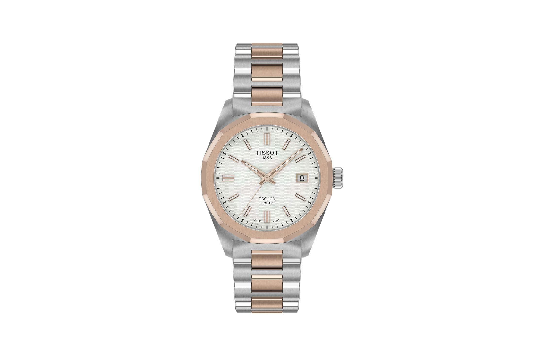 ティソ PRC 100 ソーラーでブランドは、新開発のライトマスター ソーラー テクノロジーを採用した。従来のソーラー技術ではソーラーセルを文字盤の下に積層していたのに対し、それを風防のサファイアクリスタルに圧着することで、文字盤を透過させることなく、素材やカラー、デザインに自由をもたらす画期的な技術だ。初登場時の39mmに加えて11月には日本でも34mmのケースのラインナップを揃え、年明けの新作ではイエローゴールドコンビなどさらに多彩なバリエーションを拡充。スイス発祥の新たなソーラーウォッチとしてコレクションを構築しつつある。