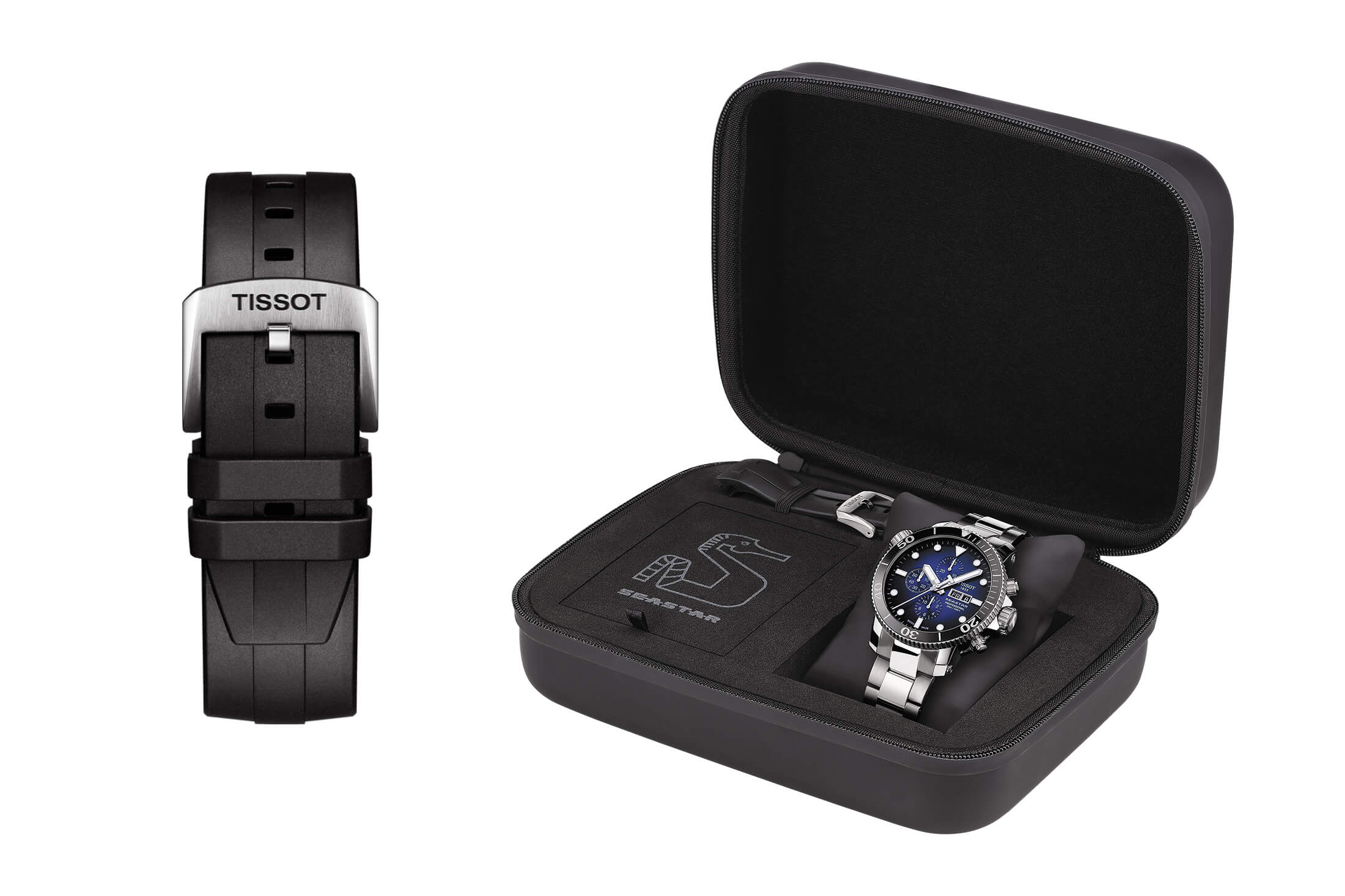 ティソでは、過去にもヘリウムガスエスケープバルブを装備したモデルをリリースしていたが、本作ではベゼルロックシステムと一体化したヘリウムエスケープバルブを搭載。これは、潜水時には10時位置にリューズをネジ込むことでベゼルをロックして誤操作を防ぎ、逆に浮上時は10時位置のリューズを開放することでベゼルのロックを解除すると共にヘリウムエスケープバルブを作動させるという機構。ティソが特許取得した新技術となっている。