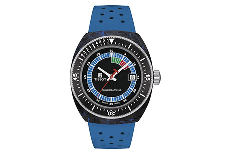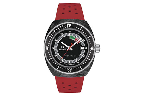オリジナルと大きく異なるのは、ケース素材にグラスファイバーではなく、フォージドカーボンを採用したことだ。これについてティソは、フォージドカーボンは現代の時計製造におけるハイテク素材であり、1960年代末のグラスファイバーの軽量性や弾力性といった特性だけでなく、その時代ごとの革新性という意味でも通じ合うと説明する。単にデザインやスタイルの忠実な再現ではなく、革新的な技術でアップデートしてこそリバイバルする価値があるという英断だろう。そしてそれはティソ シデラル本来のスピリットにも添う。時代の最先端素材とヴィンテージな魅力の融合によって、シデラルは過去から現在への正統進化を果たしたのである。