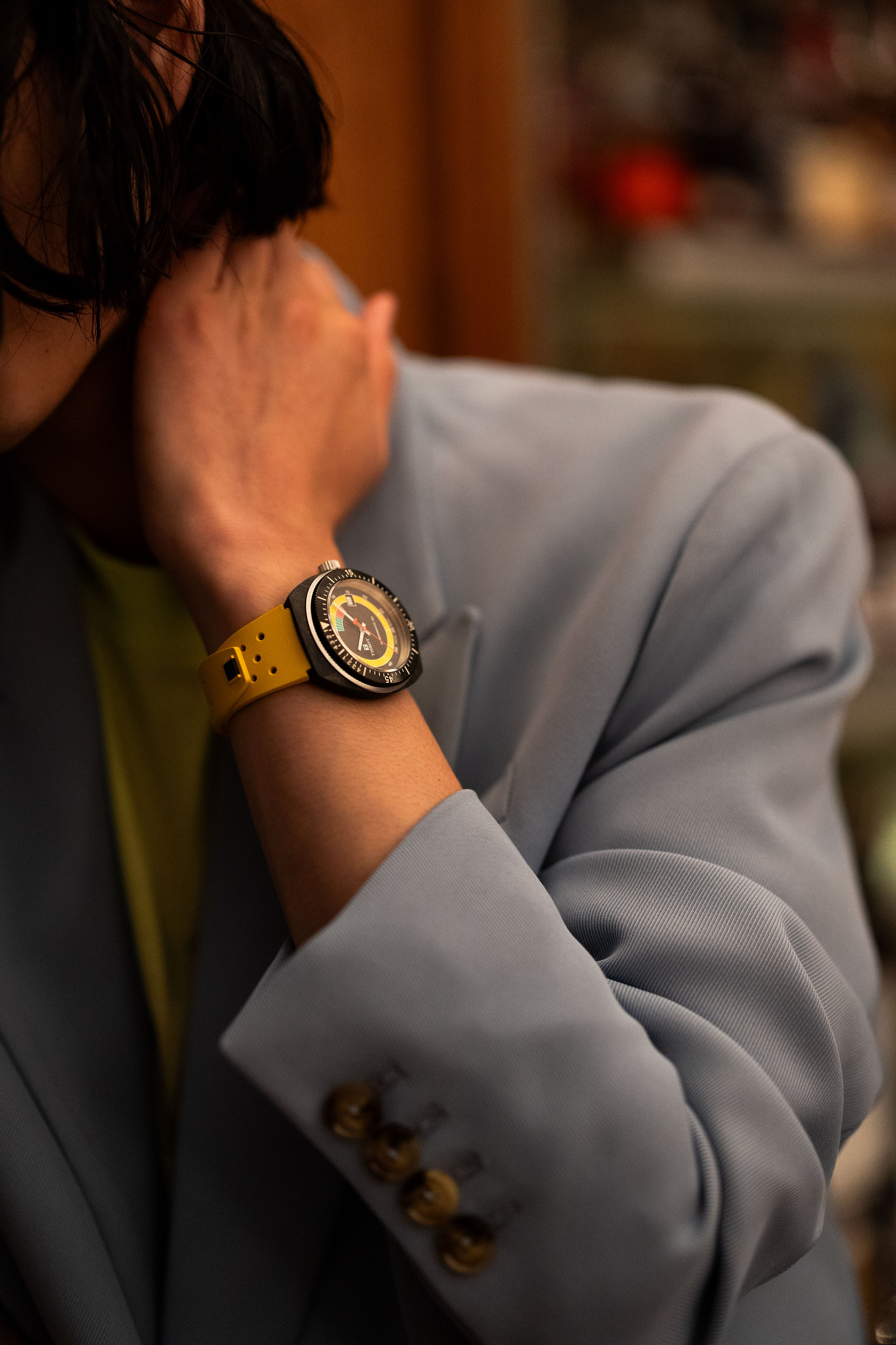 腕時計業界において人気筆頭カテゴリであるラグジュアリースポーツを例に出すまでもなく、70年代らしいデザインは今高く評価されている。それは決して、当時を生きていた人々やその時代に憧れを持つ人々のノスタルジーからくるものに限らないだろう。そのときの先進技術を注ぎ、素材やデザイン、カラーリングでも既成概念を打ち破ったエポックメイキングなプロダクトの数々への称賛によるものであり、時を経ても輝き続ける価値に魅了されるからにほかならない。