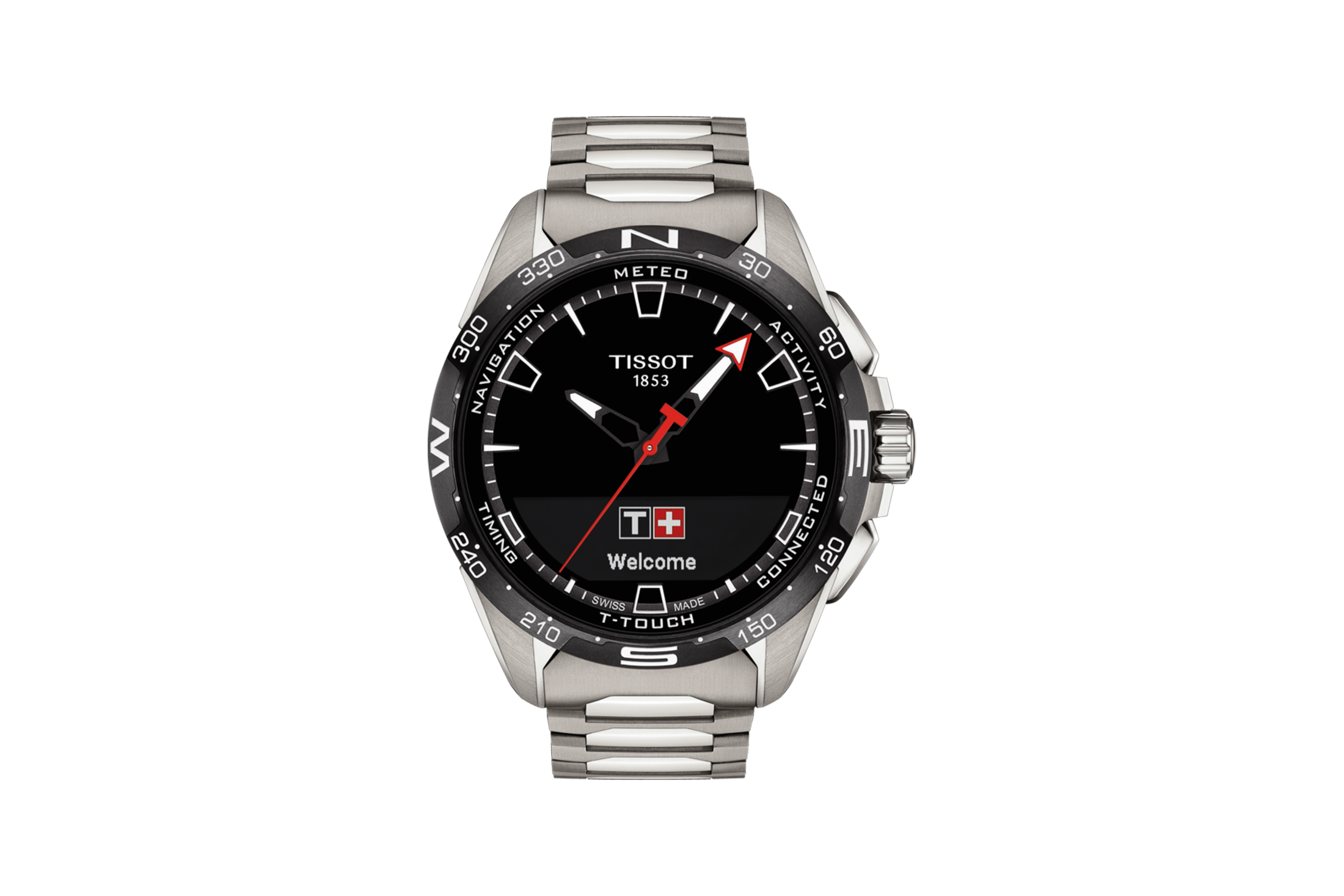 1999年に誕生して以来好評を得ているタッチパネルの操作性や、2004年に実装されたスマートフォン連携機能の利便性はそのままに、ティソ T-タッチ コネクト ソーラーは数々のエレメントをブラッシュアップして実用性を格段に向上させた。なかでも特筆なのが、よりロングライフで使用可能となったソーラー充電バッテリー。ダイヤル下に太陽電池を内蔵し、スマートフォンと連動させた状態で最長6ヵ月、連動させなければ最長で10年もの長時間駆動を実現した。つまり「面倒な充電から解放されながら、いつでもすぐに使える」多機能ウォッチである点が、スマートウォッチとは大きく異なるポイントだ。