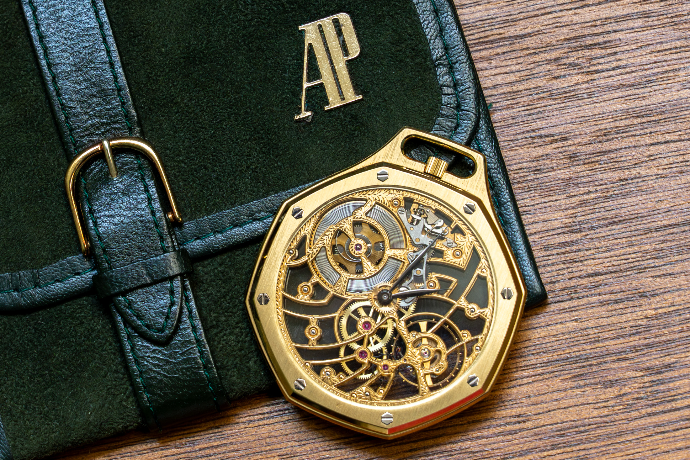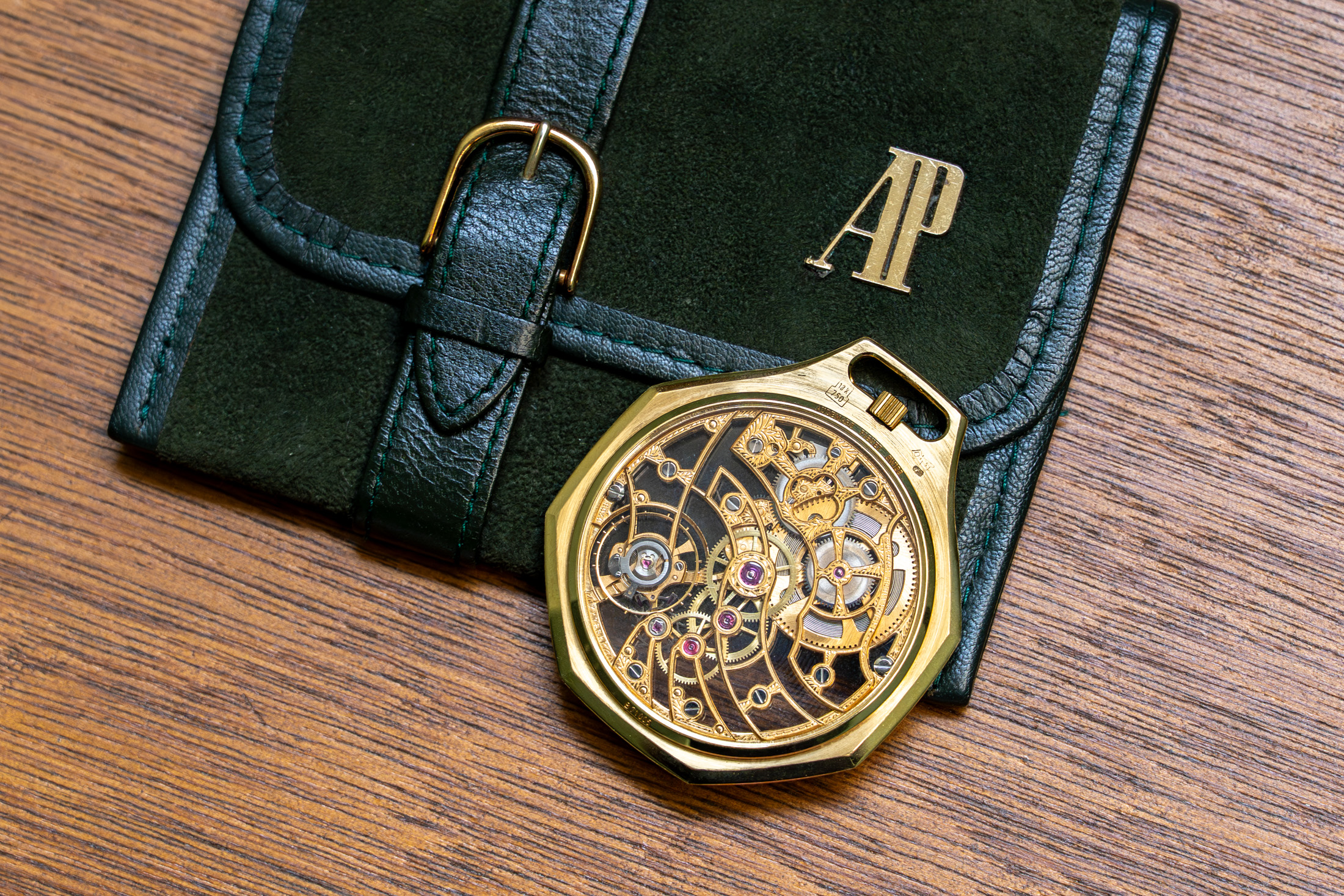 1981年にわずか20個のみ製造された、ロイヤル オークのスケルトン懐中時計。伝説的デザイナー、ジェラルド・ジェンタによるロイヤル オークは、いまやオーデマ ピゲを象徴する存在ですが、その文脈はほとんどの場合、腕時計として語られてきました。だからこそ、このアイコンをあえて懐中時計として成立させた本作には、強い“異物感”があります。