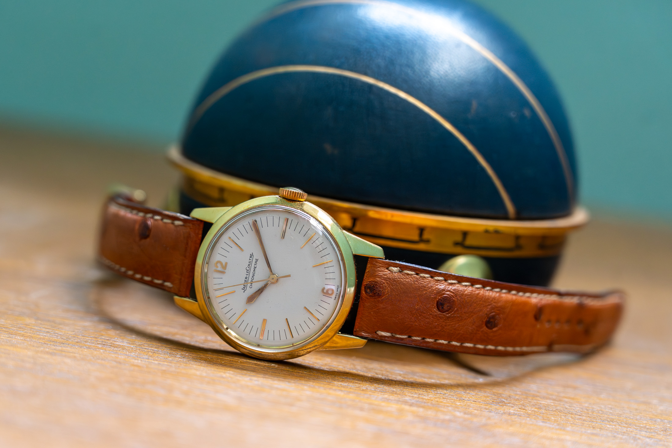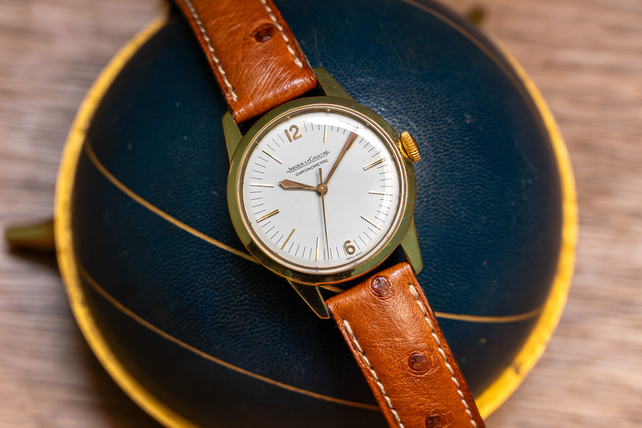 ヴィンテージのジャガー・ルクルトのなかで、個人的にいまだ過小評価されていると感じているモデルが、このジオフィジックです。昨年、僕が出張でパリを訪れた際、ヴィンテージウォッチを扱うショップでステンレススティールケースのジオフィジックを手に取る機会がありましたが、今回「プレコグのおもちゃ箱」に並ぶのは、さらに希少なイエローゴールドケースの個体です。
