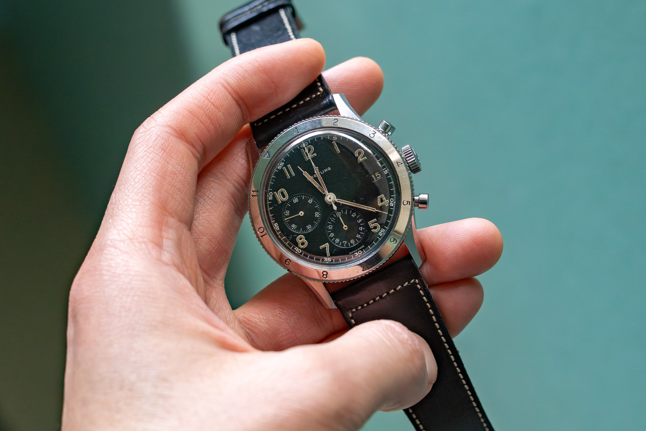 さらに興味深いのは、この時計の希少性を物語るエピソードです。安藤さんは過去に、ブライトリングに在籍するヴィンテージウォッチのエキスパートと話す機会があり、その人物もまた、この765 AVI “デジタル”を自身のコレクションとして所有していたそう。そして、そのエキスパートでさえも「他に所有している方にほとんど会ったことがない」と、当時語っていたとのことです。メーカー内部で長年ヴィンテージを見続けてきた人物の言葉として、非常に重みのある証言です。