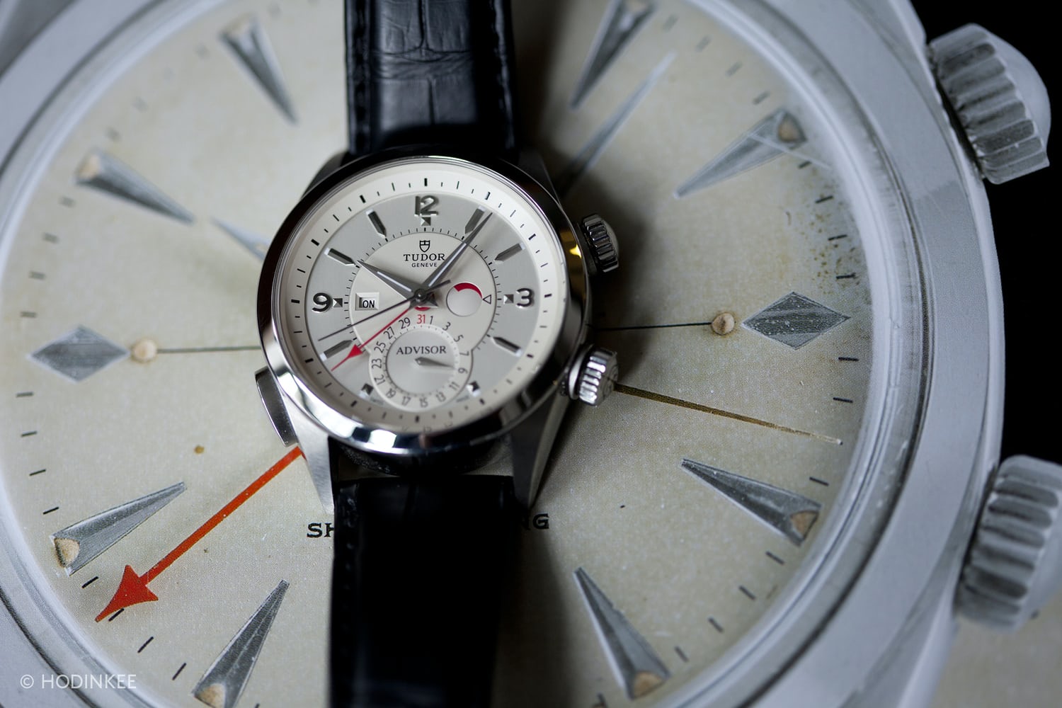 これらの時計は確かにチューダー ヘリテージ アドバイザーよりオリジナルのアラームウォッチのミッドセンチュリー美学を鮮明に受け継いでおり、自社製ムーブメントも搭載しているが、ヘリテージ アドバイザーは、ストラップ仕様で6000ドル弱(スティールブレスレットでも6000ドル強)と最も手頃な価格で、しかも自社製アラームモジュールを内蔵している。デザインは、(私見ではプラスに働いたのは全てではないが)現代の手が入っているものの、間違いなく初期のアドバイザーに触発されたものだ。