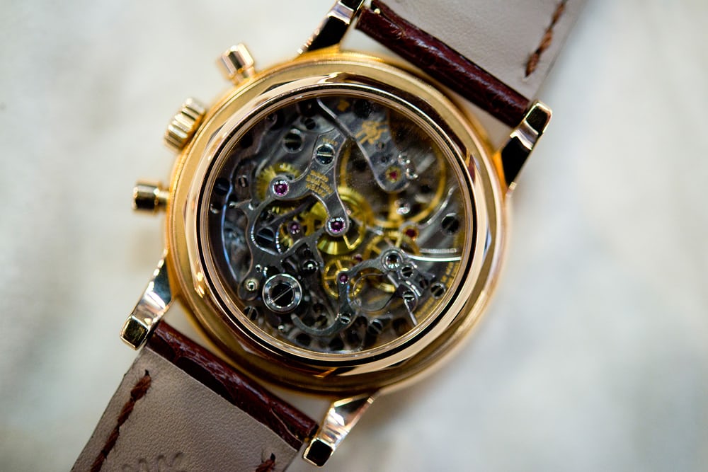 ダイヤルはかろうじて確認できるが、明らかにRef.5970であり、通常生産ラインのダイヤルではないことも明らかだ。ここでもう少し詳しく見ることができる。