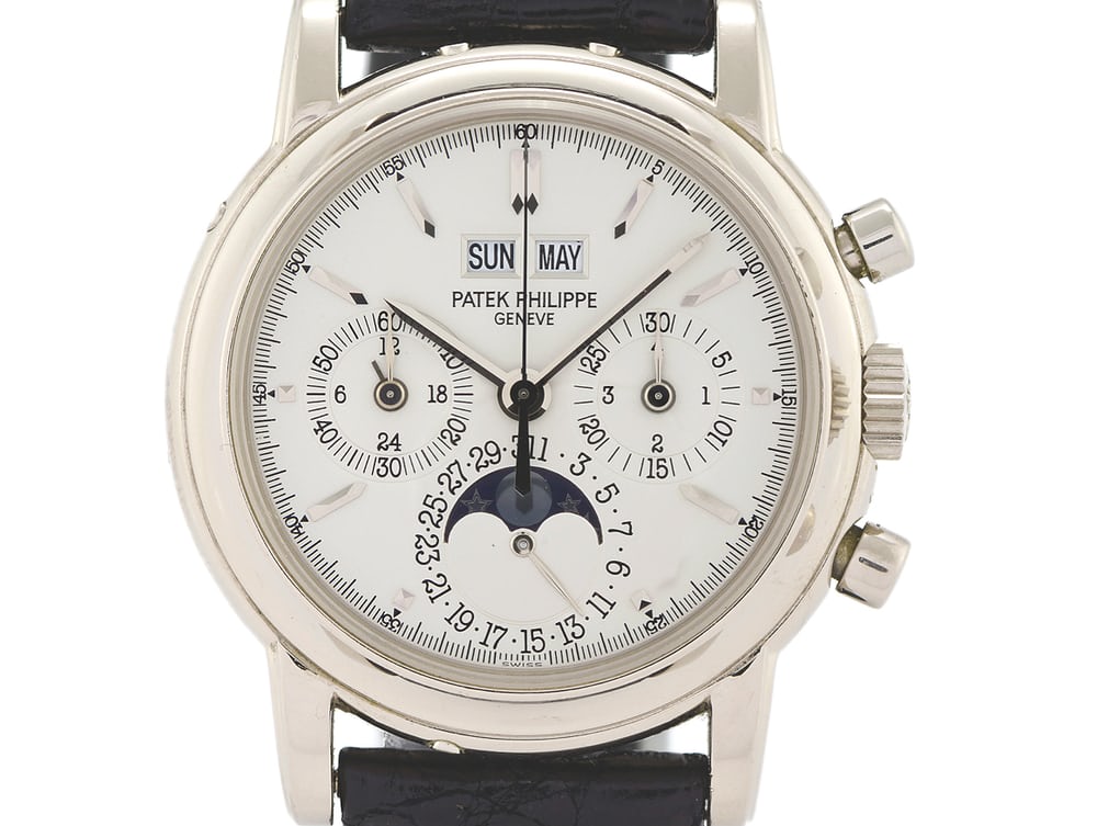 このシャンパンダイヤルのRef.5970Jは2013年12月に35万3000ドルをもたらしたが、それは全てダイヤルの希少性ゆえである。そう、ダイヤルカラーの違いだけで、通常のRef.5970Jよりも20万ドルものプレミアム値が付いているのだ。ローズゴールド、ホワイトゴールド、イエローゴールドのモデルでは13万~15万ドル前後、プラチナの素晴らしい個体では17万5000ドル前後の価格を見込むことができる。Ref.5970の価値はすべからく上昇中で、2013年5月にはプラチナ製の時計が21万7000ドルを記録した。