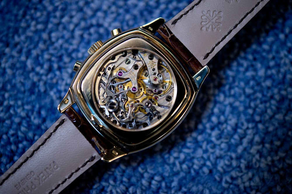 つまり、実物を拝むことはほぼ叶わない第1世代のRef.3970に続いて、第2世代が登場することはお分かりだろう。第2世代のRef.3970は、正面から見ると第1世代と非常によく似ている。ダイヤルには同じリーフ針とがバーインデックスがある。ダイヤル側の大きな違いは、サブダイヤルがダイヤルと一致したことだ - つまり配色が統一された。しかし、第2世代のRef.3970が第1世代と最も重要な点で異なるのは、ケースバックだ。スナップバックの代わりに、クローズドのスクリューバックを採用。少なくとも表向きには。なぜならRef.3970製造初期に、パテック フィリップは顧客の要望に応えるようになっていたからだ。フラートン氏が所有していた9本目のRef.3971には、サファイア製ディスプレイケースバックを備えていたように、顧客はサファイアクリスタルを使ったスクリューバックをリクエストすることができたのだ。ほとんどの第2世代のRef.3970にはディスプレイケースバックはないが、存在はするのだ。