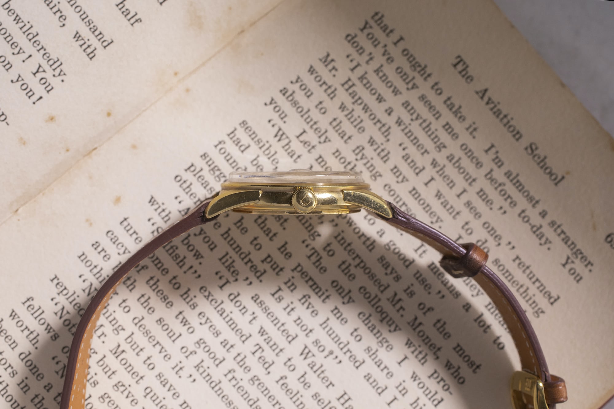 ポールルーターのサイズは35mm前後で、1mmオーバーもあれば、1mmアンダーのモデルもあり、1950年代の時計としては標準的なサイズといえる。手首に装着してポールルーターの感触を楽しむためには、心の準備が必要だ。ケースサイズは控えめかもしれないが、この時計に込められたイデオロギーは、かつて飛行機が醸し出していたラグジュアリー感を連想させる。ポールルーターの時代、SASではエコノミークラスでスモーブレッド(デンマークのオープンフェイスサンドイッチ)が食べ放題のビュッフェを提供していた。身なりの整ったフレンドリーな客室乗務員が、ハムの足を切り分けて座席に配るカートを回していた。