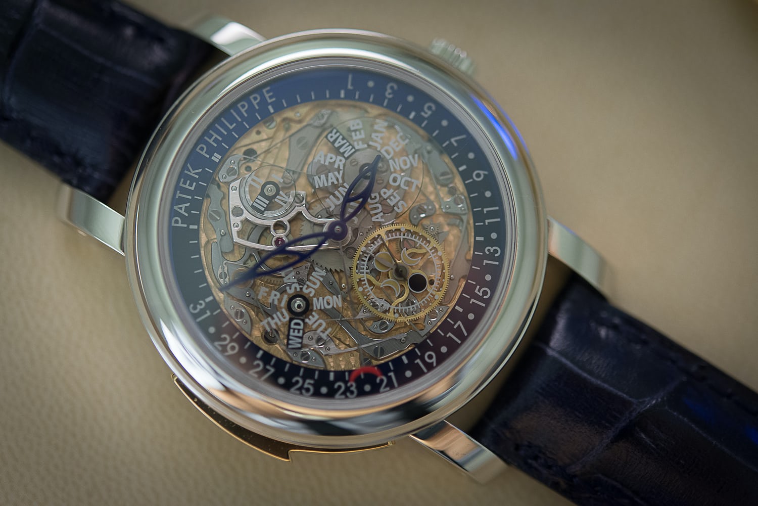 Ref.5307Pは上記のローズゴールドと同じモデルだが、この特別なリファレンスには40個のバゲットダイヤ(3.91ct)がセットされている。 ある人々の話では、ダイヤモンドのセッティングにより、プラチナ製リピーターでは通常見られない方法で音を逃がすことができるとのことだ。 この時計は2013年に発表され、販売価格は85万ドル(9000万円)前後だ。