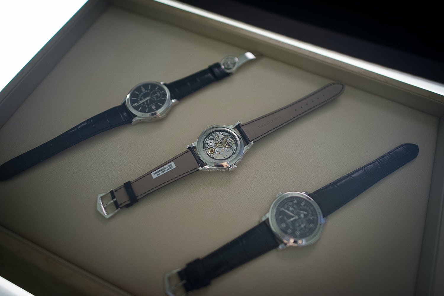 ミニッツリピーターは、今では世界中の数十の時計メーカーによって製造されているが、いまだにロマンチックで近寄りがたい雰囲気が漂う存在だ(そしてパテック フィリップの場合はとりわけその傾向が強い)。 そのため、パテックがニューヨークで開催したクロノグラフとミニッツリピーターの特別展示会に僕らが招待されたとき、何台ものカメラとマイクを持参する必要があった。 全部で9種類のミニッツリピーターが防音室で鳴っている様子を収録したからだ。パテック フィリップのミニッツリピーターのほぼ全コレクションを網羅した(Ref.5207/5208を除く)。