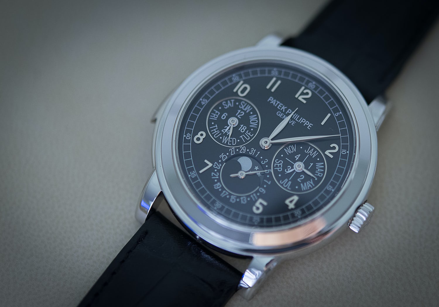 Ref.5213Gはレトログラード式永久カレンダーを搭載したミニッツリピーターだ。 直径40.6mmで、ヒンジのついた「オフィサースタイル」の開閉裏蓋を備えている。 2012年発表、販売価格は約63万1000ドル(6650万円)。