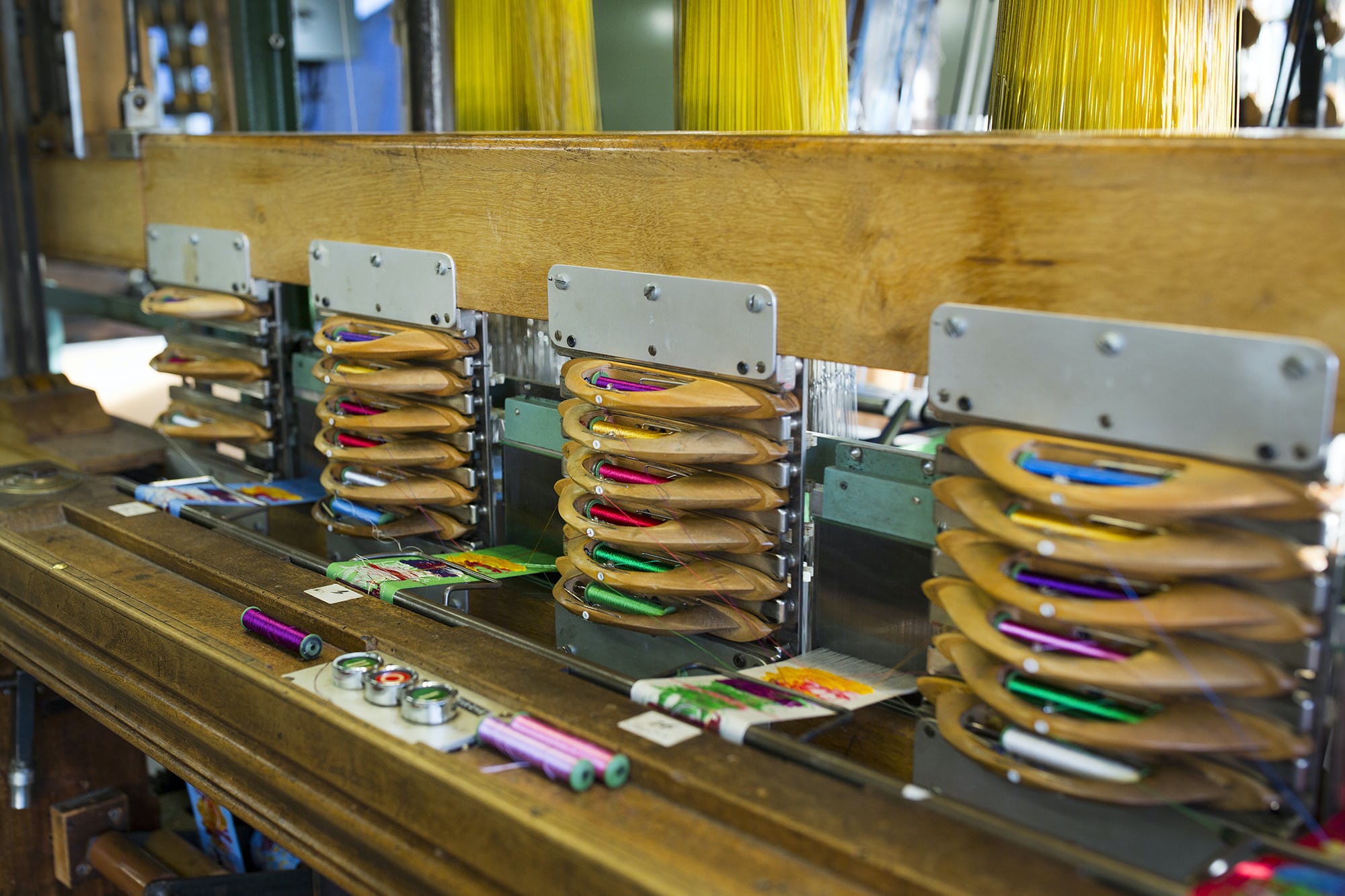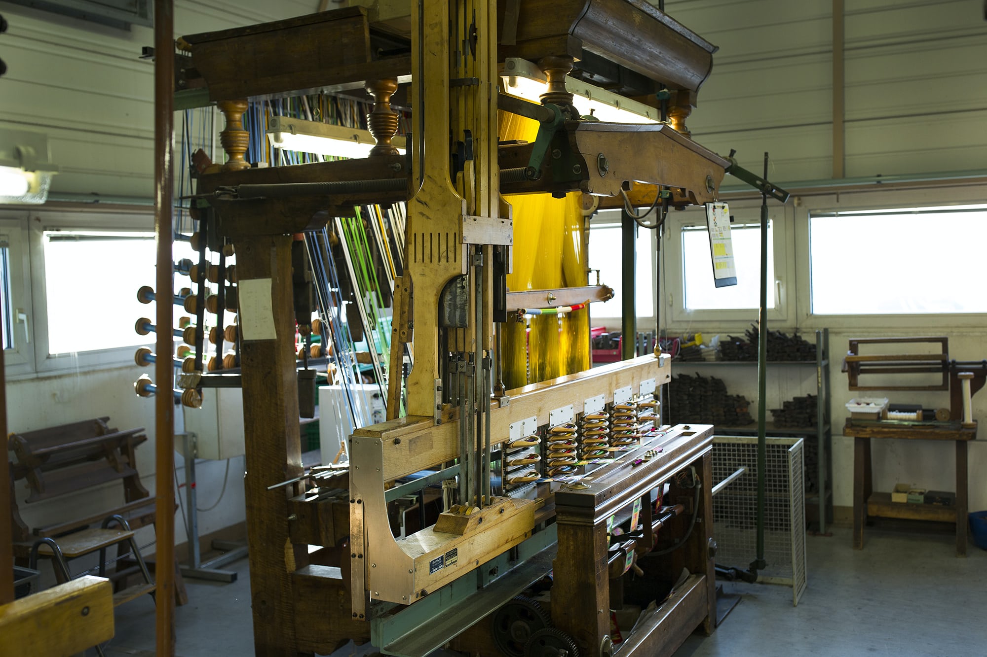 フォール氏の会社は、リヨンから車ですぐ近くの静かなサン-ジュスト-サン-ランベール村にある。もともとは女性たちが内職のために、自宅内の織機で織っていたが、現在では織機は工場内に移され、フォール社の従業員が3交代制で稼働している。