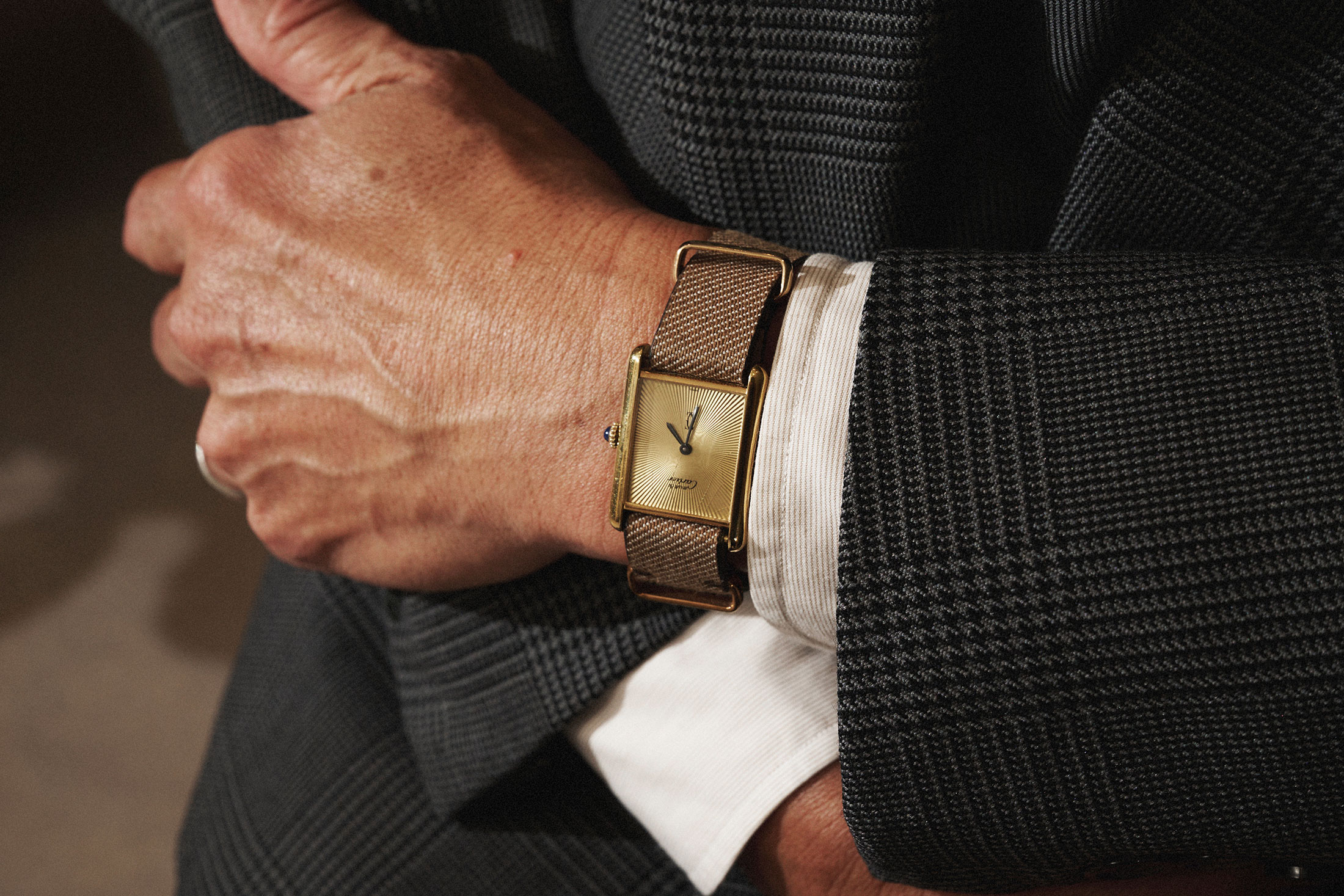 鴨志田さんが身に着けている時計のなかでも、周囲からとりわけ注目を浴びるのがプラチナケースのタンクである。15年ほど前にイタリアの時計店で出会ったものだそうだ。