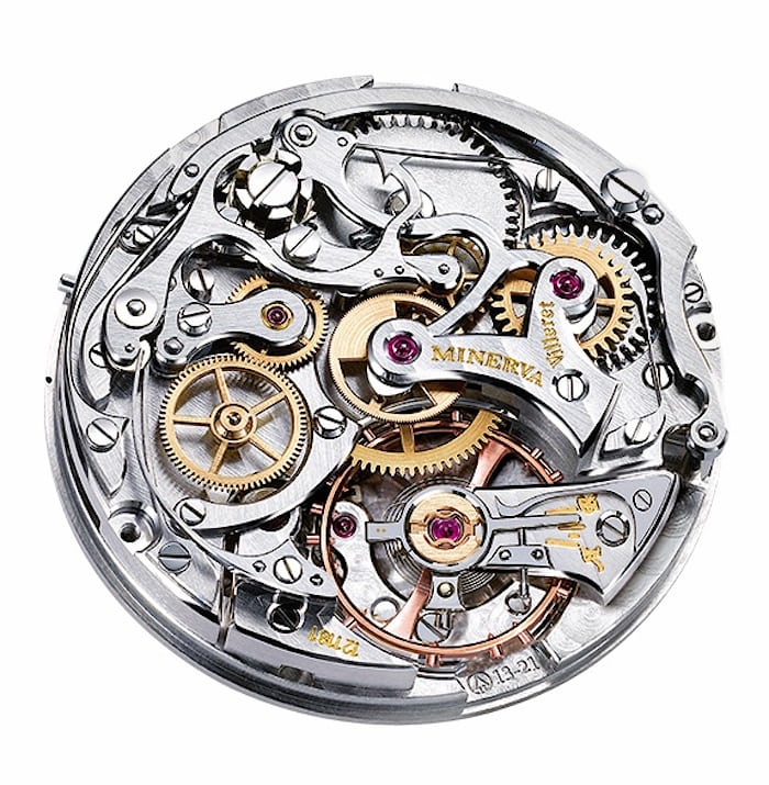 ヴィンテージ・クロノグラフを製造するミネルバは、2007年にモンブランの傘下に入り、ヴィルレの工房からモンブランの最高級時計に使用されるムーブメントを世に送り出している。ヴィンテージ時代からインスピレーションを得たムーブメントにより、万年筆のイメージが強いブランドに歴史的権威を与える存在だ。
