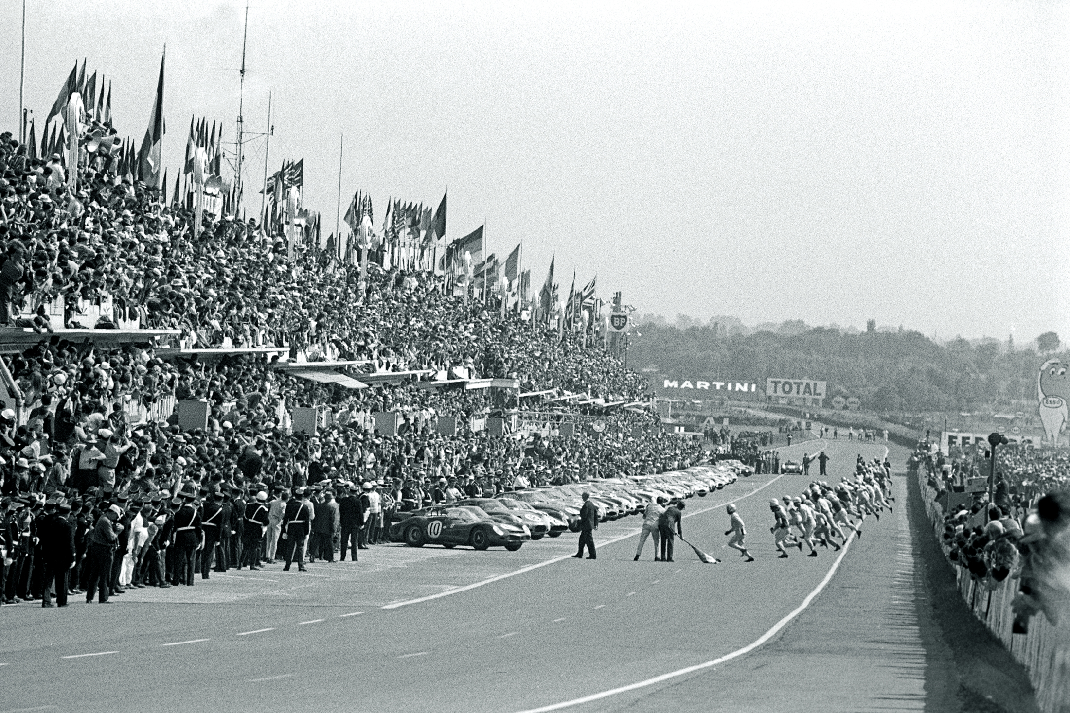 ル・マン24時間レースの競技はフランス中部にあるル・マン市のル・マン24時間サーキットで行われていた。写真は1925年から始まったル・マン式スタートの様子。シートベルトを閉めないドライバーが多かったため、1971年から通常のローリング式スターティングを採用するようになった。
