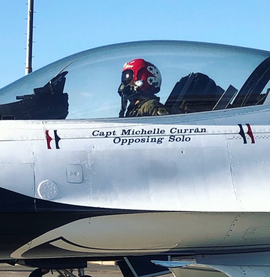 サンダーバーズは1953年にデビューしたが、その使命はチームの発足以来変わってはいない。それは、「人材を確保し、維持し、鼓舞すること」だ。サンダーバードのパイロットに応募するには、少なくとも750時間以上の飛行時間が必要となる。これは同チームのパイロットになることが、アメリカ空軍の有資格操縦士の中でも最も切望されるポジションの1つだからである。チームに参加する前は、日本の三沢で3年間F-16に搭乗し、フォートワースで教官パイロットとして3年間を過ごした。彼女は初の女性パイロットであり、ソロでの主席操縦者となったのだ。サンダーバードのパイロットとしての任務は通常2年間だが、COVID-19のために1年延長された。サンダーバーズは、アメリカ・ストロング作戦(新型コロナウイルスに対応する医療従事者などへの感謝と激励をおくる飛行作戦)に参加。4月28日サンダーバーズは、海軍のデモ飛行隊ブルーエンジェルズと共に、ニューヨーク、ニュージャージー、ペンシルベニア州の上空を飛行した。カラン少佐は、アメリカ・ストロング作戦のような飛行は二度と起こらないだろうと私に話した。「FAA(アメリカ連邦航空局)が参加し、都市も参加。通常アメリカで最も忙しいエリアの空の交通量が軽減されていました。通常なら信じられないほどの制限があるのです。」