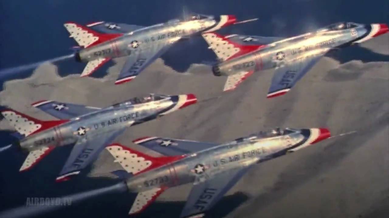 サンダーバーズのカラーリングを施した北米仕様のF-100スーパーセイバー。