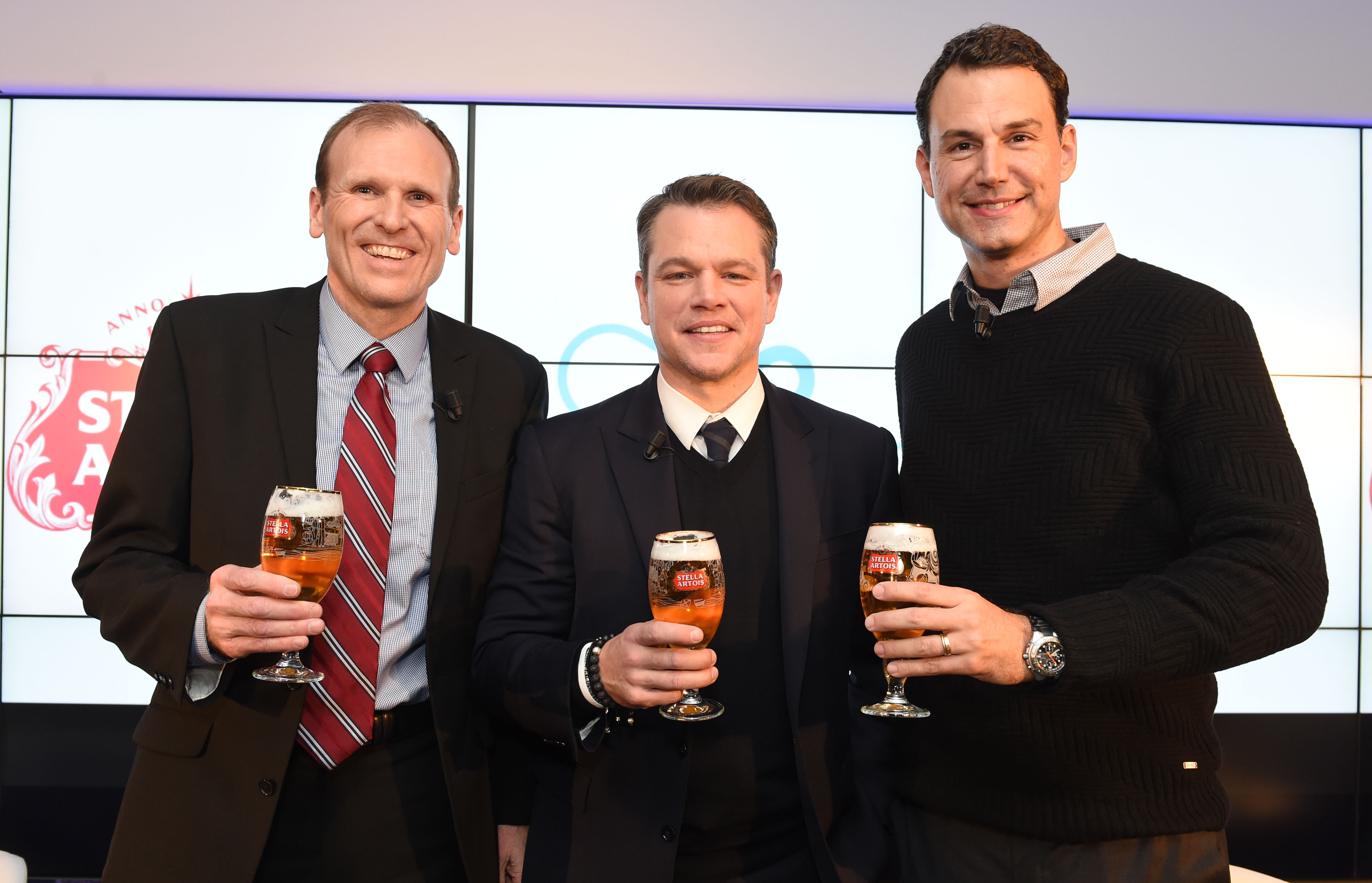バドワイザーやコロナビールを扱う、800年の歴史を持つ世界最大の醸造会社アンハイザー・ブッシュ(AB)・インベブ。同社のアフリカ地区社長リカルド・タデウ(Ricardo Tadeu)氏は、国際的な非営利団体Water.orgの共同創設者であるゲイリー・ホワイト(Gary White)氏(写真左)、俳優のマット・デイモン(Matt Damon)氏(写真中央)と共にパネルディスカッションを主催した。ベルギー産のステラ アルトワを持つ手元には、シチズン プロマスター アクアランド エコドライブの海外モデル BJ2040-55Eが見られる。このような場で自国ブランドを目撃でき日本人としてうれしい。